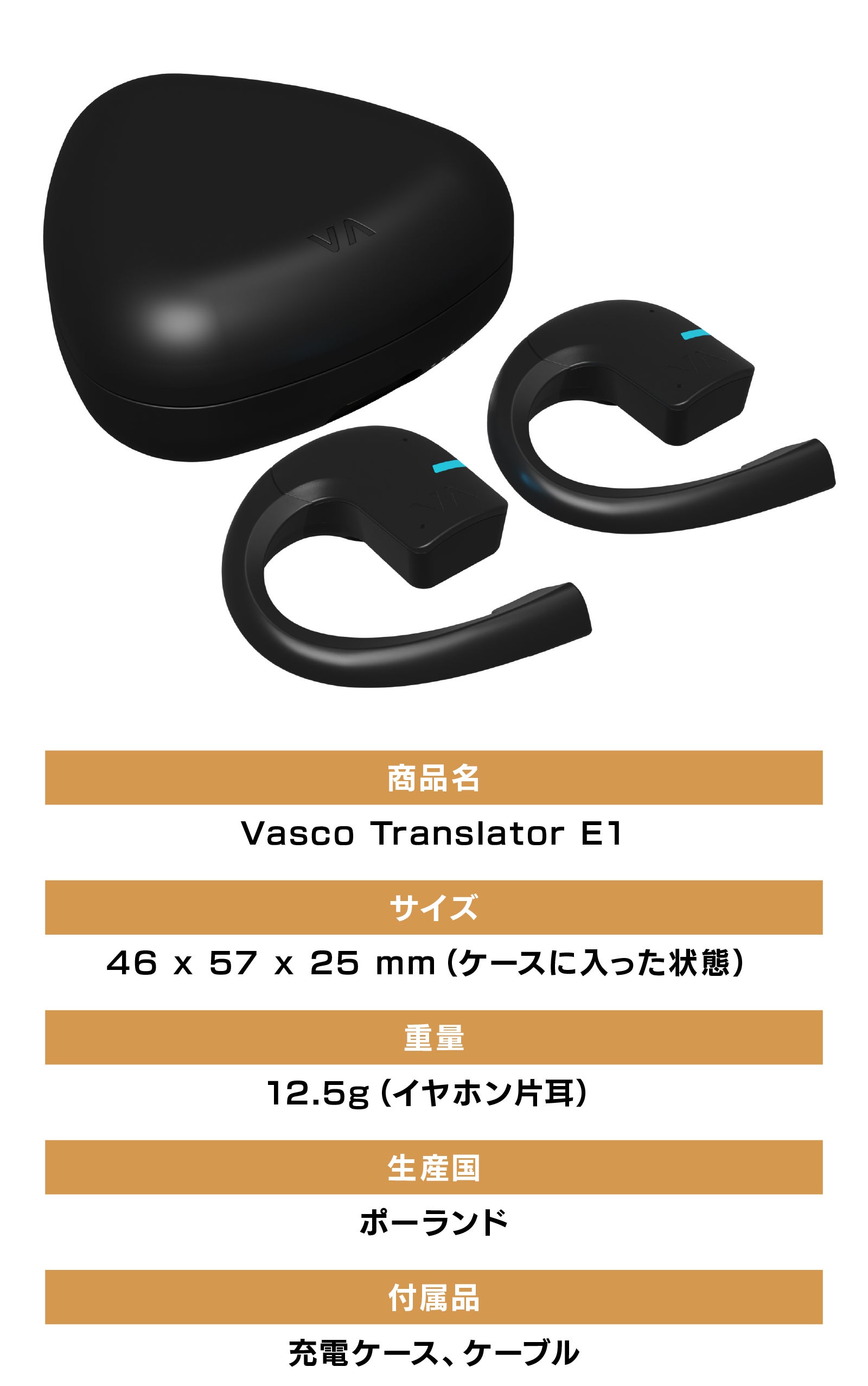 【Vasco Translator E1】は、手を使わずに会話ができる“イヤホン型”の音声翻訳機。
