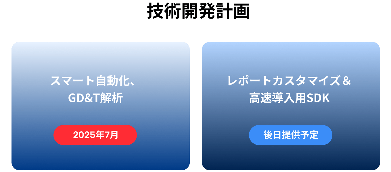 CAMPFIREでご支援いただいたすべてのTrackitユニットには、Revo Measureの1年間ライセンス(通常価格 ¥82,000)が無料で付属します。Revo Measureは、点群データやメッシュデータをCADモデルや図面と比較することで、物体の形状、寸法、品質を分析する3D計測ソフトウェアです。