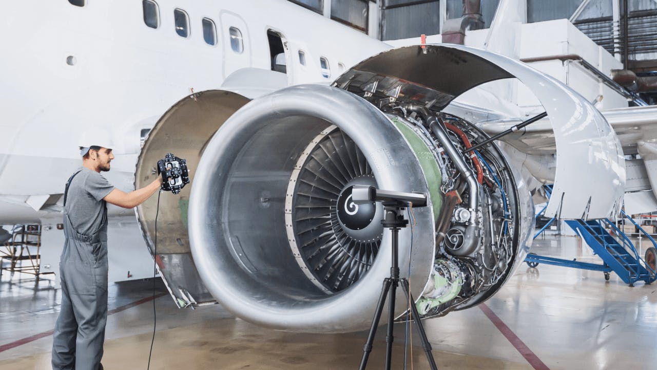 航空機部品の摩耗・疲労検査や交換部品作成のため、Trackitの光学式追跡システムで部品を迅速にキャプチャ。効率的な評価と修復を実現。