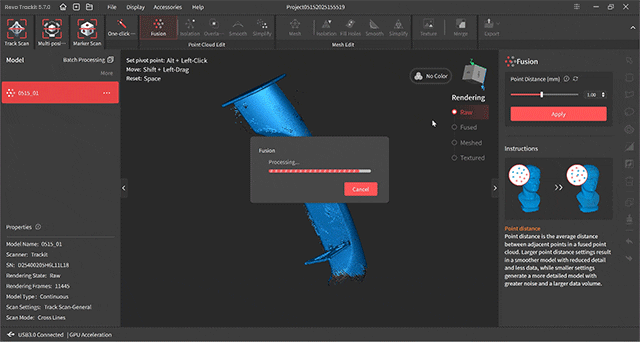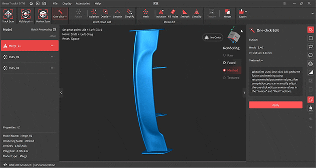 ワンクリック編集で生の点群データを自動処理。または、融合やメッシュ生成ツールを用いて完全に微調整できます。