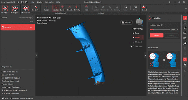 Revo Trackit は、スキャン、編集、処理、キャリブレーションを簡単に行える、無料の使いやすいソフトウェアです。(日本語版あり)
