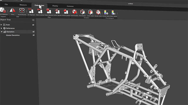 スキャンデータとCAD設計モデルを効率的に比較し、全体的および局所的な偏差を含む不一致を分析。実際の物体と設計意図との間の問題を迅速に特定するのに役立ちます。
