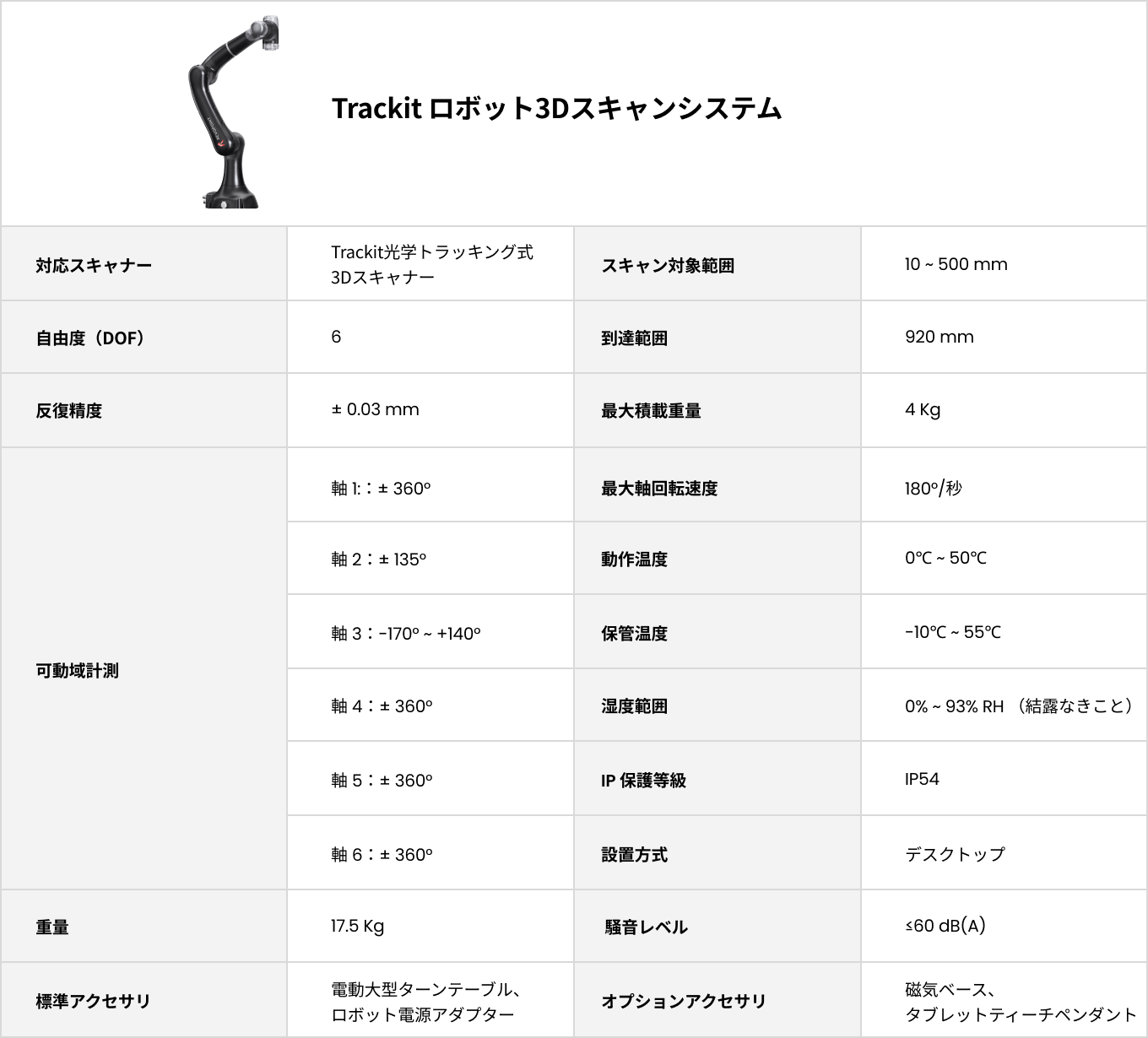 ● 主な用途:工場ラインでの自動検査、大量3Dスキャン、繰り返し測定が必要な現場などに最適な、高精度かつ安定した自動化ソリューションを求める方向けの最上位セットです。