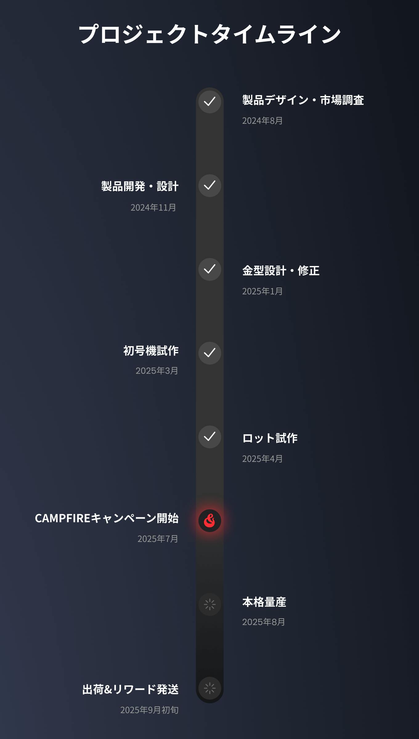 ・リターンの配送は「2025年9月まで」を予定しております。