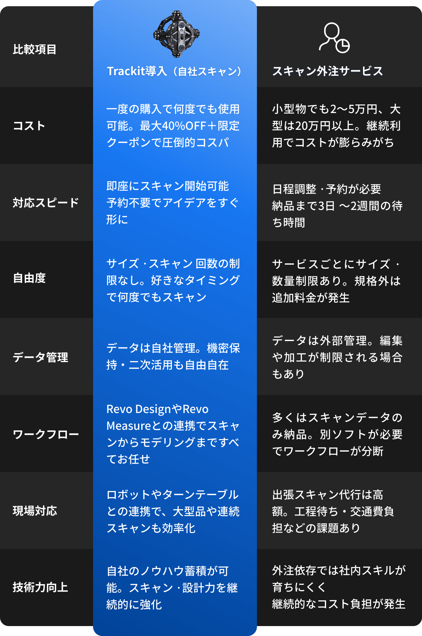 🙎♀️ 「某社の数百万円するスキャナーでスキャンできなかったものが、Trackitで問題なくスキャンできました。」