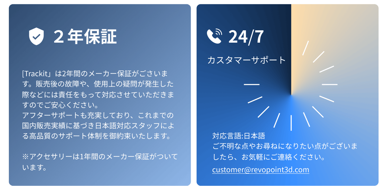 2025/09/12 14:14Trackitサポーターの皆様Trackit光学トラッキング式3Dスキャナーのクラウドファンディング期間中、熱い関心とご支援を賜り誠にありがとうございます。この度、全てのご注文品を9月12日(金)までに出荷完了する運びとなりました。本日より順次、配送追跡番号を登録メールアドレスへ送信して参ります。ご支援時に入力いただいたメールアドレスと電話番号のご確認をお願い申し上げます。万が一情報が届かない場合は、どうぞご安心ください。customer@revopoint3d.com までお問い合わせいただければ、担当者より订单状況についてご連絡差し上げます。その他、請求書発行・商品到着後の使用方法などについてご質問がございましたら、お気軽にカスタマーサービスまでご連絡ください。確認次第、迅速に対応させていただきます。改めまして、皆様の温かいご支援とご信頼に心より感謝申し上げます。Trackitがお届けする効率的で高精度な3Dスキャン体験を、どうぞお楽しみください。Revopointチーム もっと見る