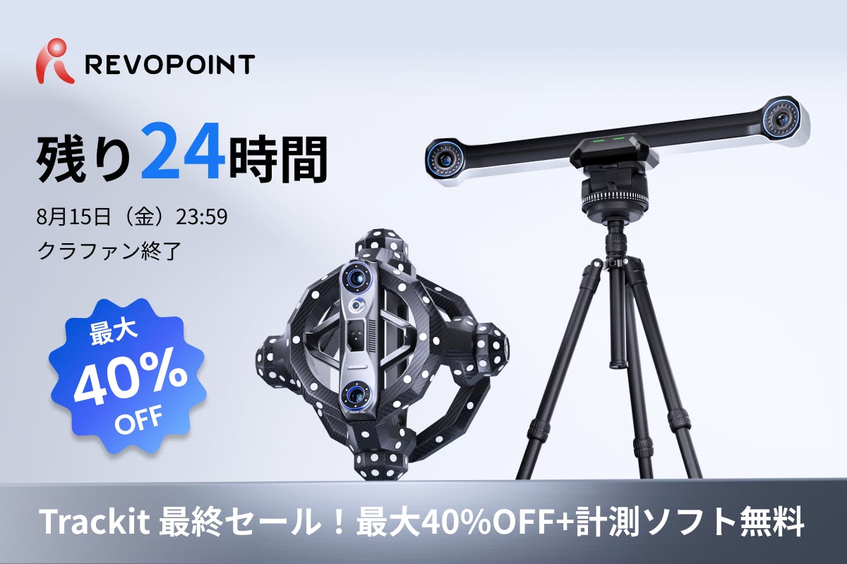 クラウドファンディング終了まで 残りわずか1日。最大40%OFF+Revo Measure 1年間ライセンス無料 の特典を入手できる最後のチャンスです。