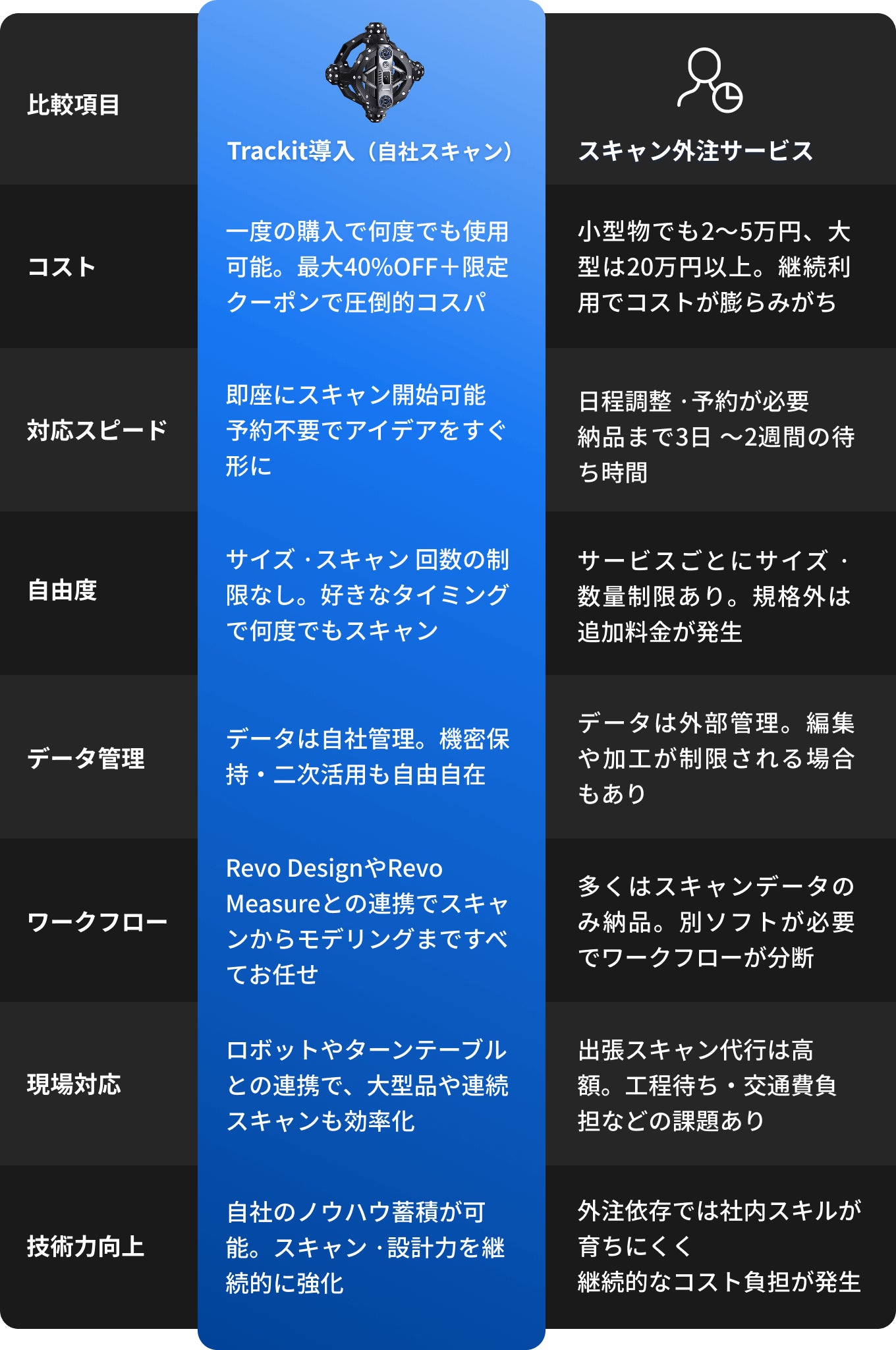 🙎♀️ 「某社の数百万円するスキャナーでスキャンできなかったものが、Trackitで問題なくスキャンできました。」