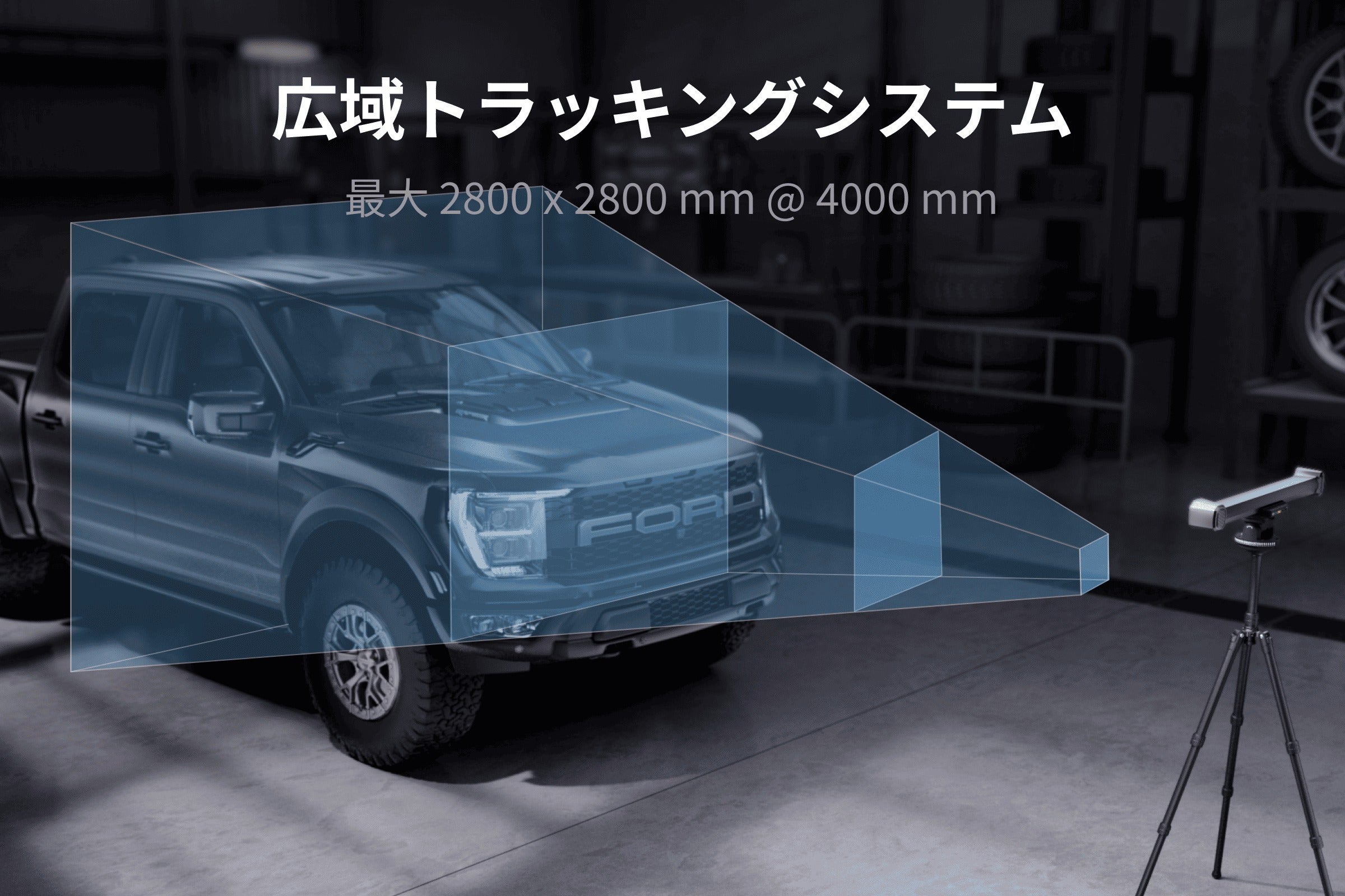 · 最大トラッキング範囲: 2800 × 2800 mm @ 4000mm