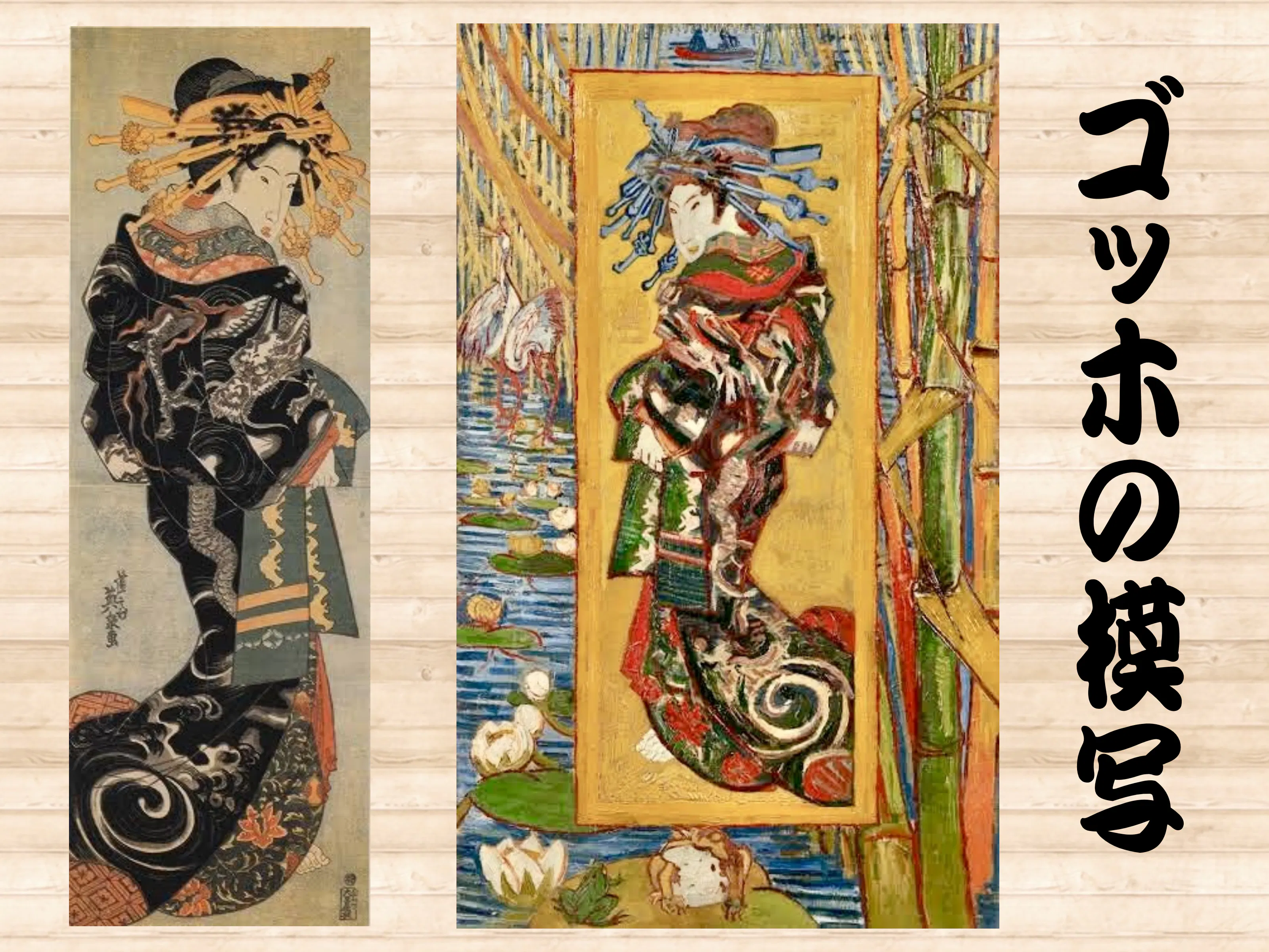 19世紀のパリでは「ジャポニスム」と呼ばれる日本文化ブームが巻き起こりました。浮世絵のシンプルな線と鮮やかな色彩は、西洋の写実主義とは対照的で、ドガやモネ、ゴッホなど多くの芸術家に衝撃を与えました。