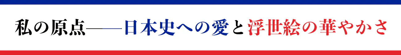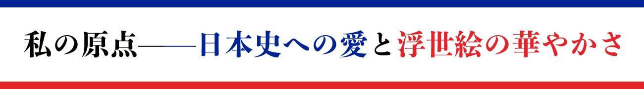 そんな、心の奥にあった日本史への興味が再び花開いたのは、アート活動を開始した後のことでした。芸術や文化の世界に浸るうちに、浮世絵が持つ「粋」な華やかさと精神性に魅了されました。浮世絵を軸に芸術活動をしようと決意したのは、2017年のことになります。