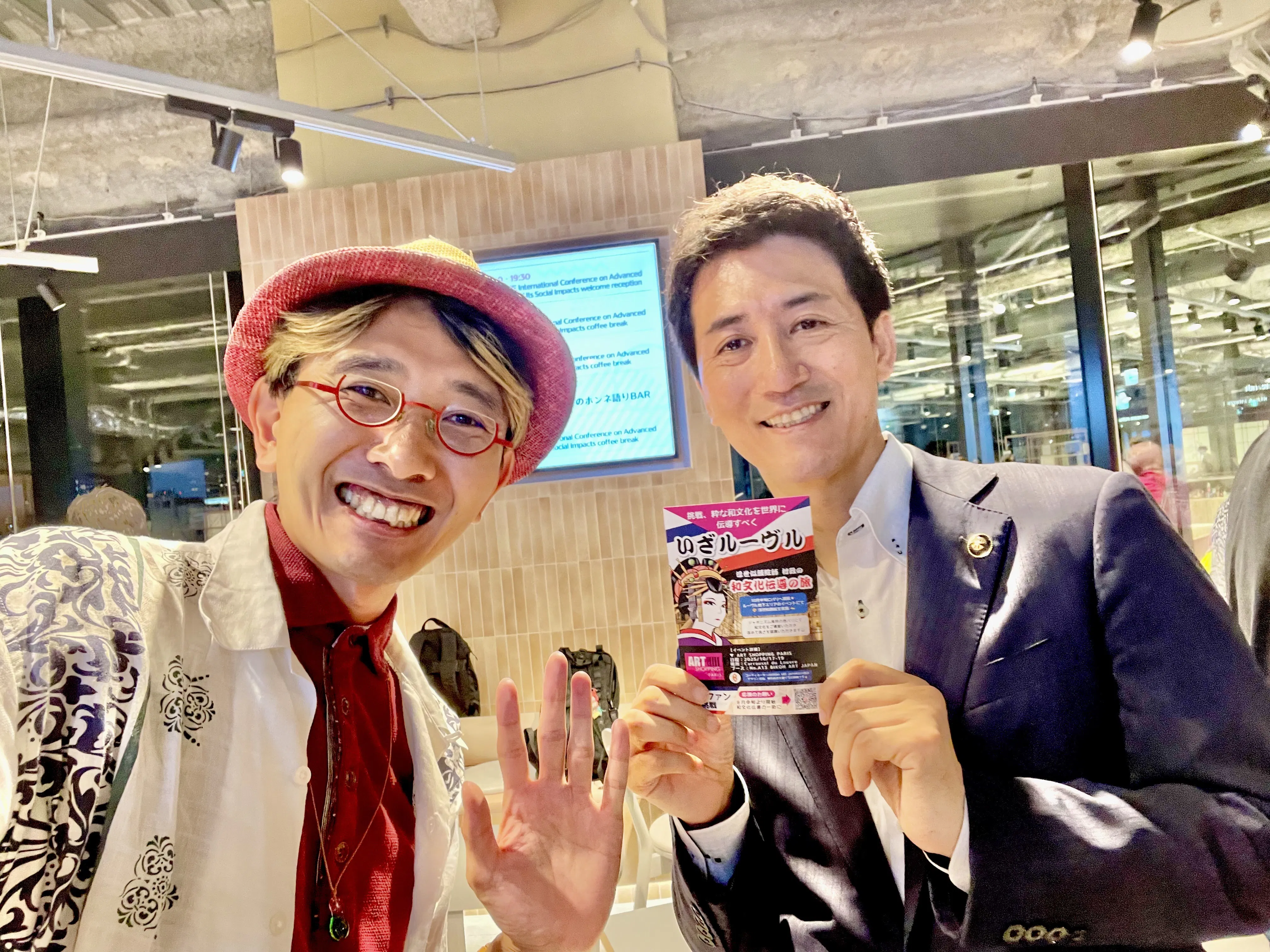 2025/10/23 22:00終わりました。そして、絵の展示、売約、似顔絵…全てやり遂げることが出来ました。ほんと文句なし、飾って、売れて、描いてだもの。おまけに評価も聞けたしね。なので、ここからは今回のパリ・ルーヴルイベントのレポを、いくつかの項目「展示・似顔絵・販売・国際交流・観光」に分けてご紹介!展示↓今回のイベントの看板↓私のブース全景人通りの良い好立地でした。↓今回持参した作品たちフランスの地元の英雄たる「ナポレオン」の浮世似顔絵を一番上に配置、その下にR-15な美しき江戸の美女を並べ、更にその下に名刺と自分のプロフィールを配置しました。似顔絵ワークショップイベントは17日から19日まで3日間あったのですが、その真ん中の18日に似顔絵ワークショップを実施しました。↓最初のお客様、セクシーな一枚をご所望しました。↓製作中の一枚、向こうの方は待ち姿もサマになってる。↓可愛い女の子も↓絵を見せた瞬間の一枚、みんな反応が良い1日で8名の方々のお顔を描かせていただきました。ブースに制約があったことや人の流れを考えると、かなりうまくいきましたね。販売今回、ある意味一番驚いたのは、絵をご売約いただいたことです。似顔絵ワークショップが主な目的だったので。そして、今回ご購入くださったのは、以下のパリ出身・在住の男性の娘さんです。通りすがりに目が止まったようで、「Beautiful」と評価。すっかり気に入っていただき、購入してくださいました。(しかも、最終日にもブースに遊びに来てくださいました)国際交流今回のイベントでは、フランス以外にも世界中から様々なアーティストが集まっておりました。中国、アメリカ、ブラジル、ヨーロッパ諸国...会期期間中は、その交流に明け暮れておりました。私の絵の評価で一番多いのは、「眼」と「おっぱい」でした。描くときにこだわっている部分なので、ご好評いただけて嬉しいです。アーティストの方、美術関係者、パリのご近所の方、本当にたくさんの方で出会いました。記念写真を撮った方々との写真、ここにご紹介いたします。観光加えて、パリの街巡りも成功しました。ルーヴル、凱旋門、エッフェル塔、セーヌ川、シャンゼリゼ通り、オルセー、オランジュリー、モンマルトル、セントサクレ、ムーラン・ルージュの風車、ルイヴィトン美術館、ギャラリーラファイエット…などなど、パリをたくさん吸収しました。あの街並みから得られる栄養素は、日本では得られないモノばかりです。↓凱旋門↓エッフェル塔↓モンマルトルの丘とサクレクール寺院↓シャンゼリゼ通りのカフェにて、サウジアラビアから来た男性と談笑まぁ、ルーヴル美術館かんは盗難事件で追い出されちゃいましたが(笑↓めざましテレビデビュー(初の全国ネット)そんなこんなで、旅の報告は一旦終わりとなります。ですが、ある意味ココからが本番。この経験をフィードバックする番となりますし、ご支援いただいた方々にはお礼回りの旅が始まります。感謝! もっと見る