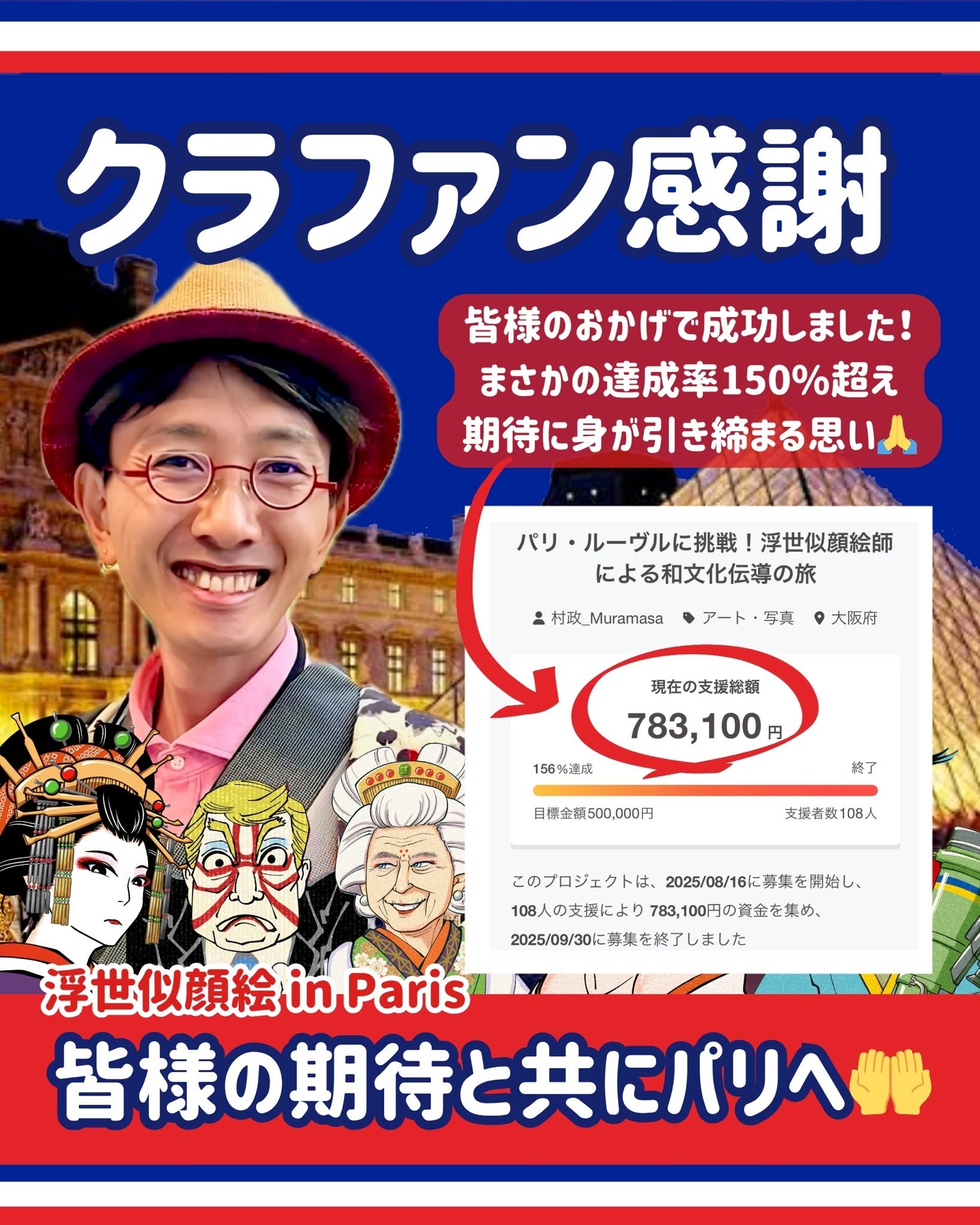感謝の45日間!大成功、パリ・ルーヴル向けクラファン