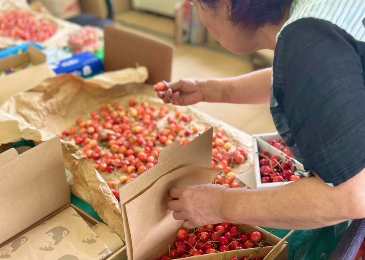 そして、収穫されたさくらんぼは、1粒ずつ丁寧に目視で確認しながら選別。