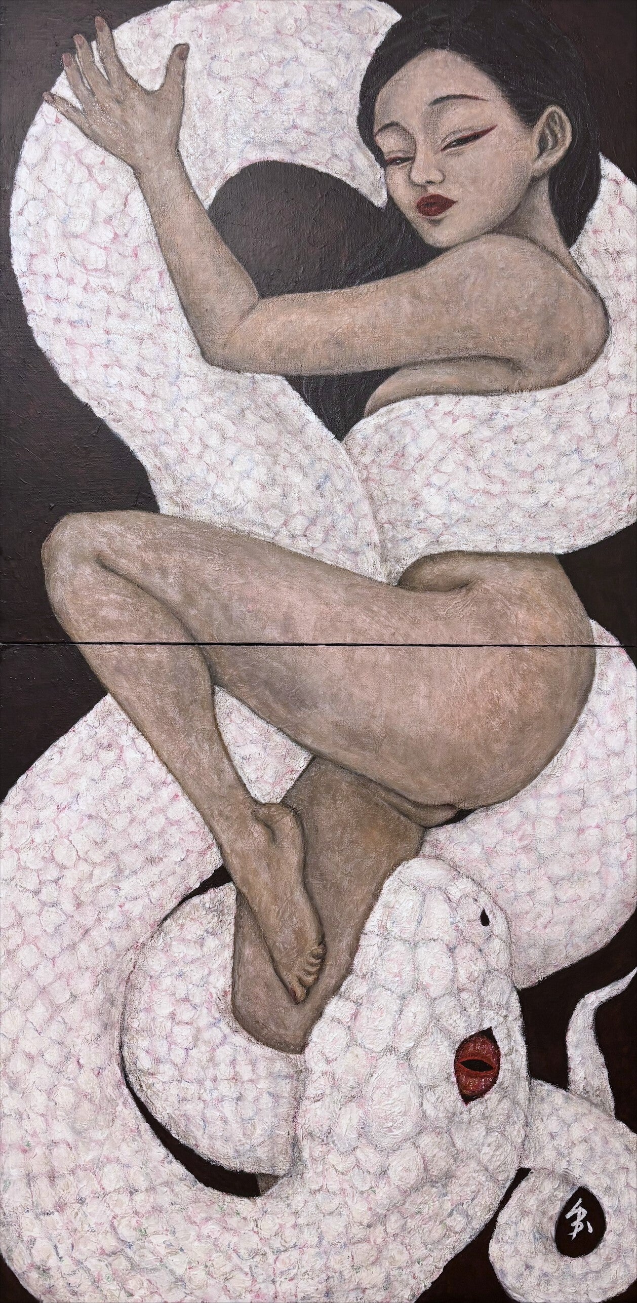女神や鳳凰といった、目には見えないエネルギーの世界を表現する一方で、女性の裸体を描くことでその多面的な魅力や感情を描き、人間の本質を浮かび上がらせるアートを制作している。