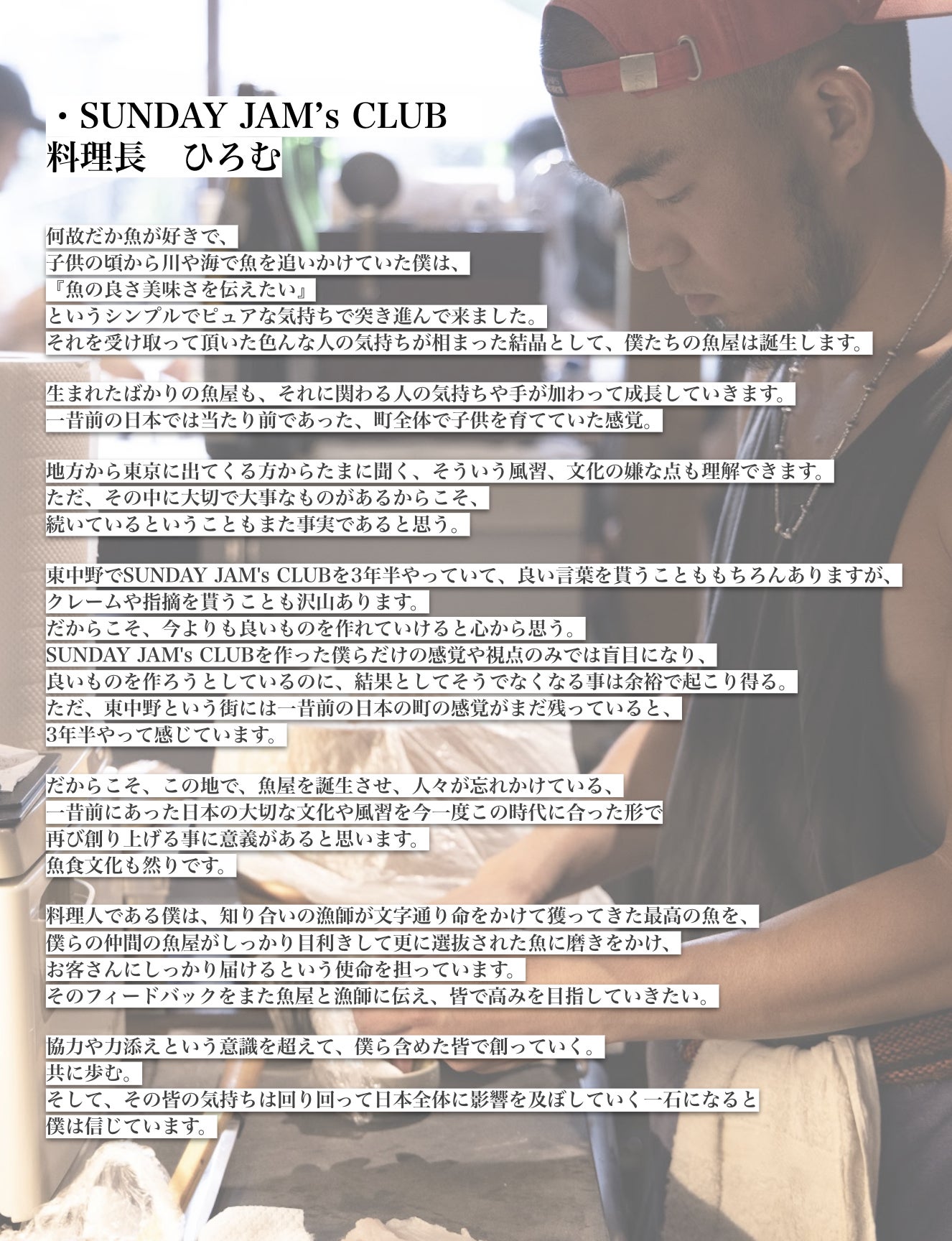 🐟料理人:SUNDAY JAM's CLUBのシェフたち