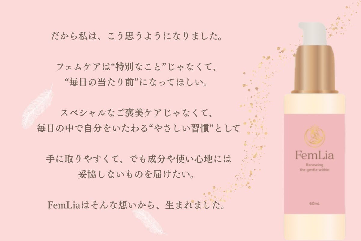 そんな想いから、この【FemLiaフェムケアローション】をつくりました。