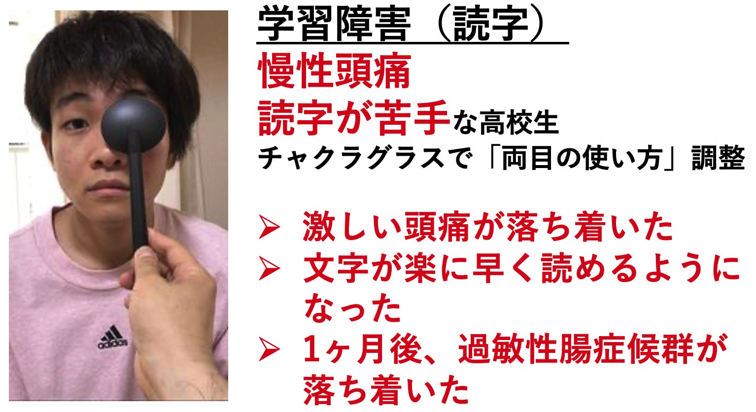 彼は長年、目からくる吐き気、頭痛に悩まされ、目の手術を考えるほどで、お母さんから手術を受けるかどうか悩んでいるとの相談を受けていました。