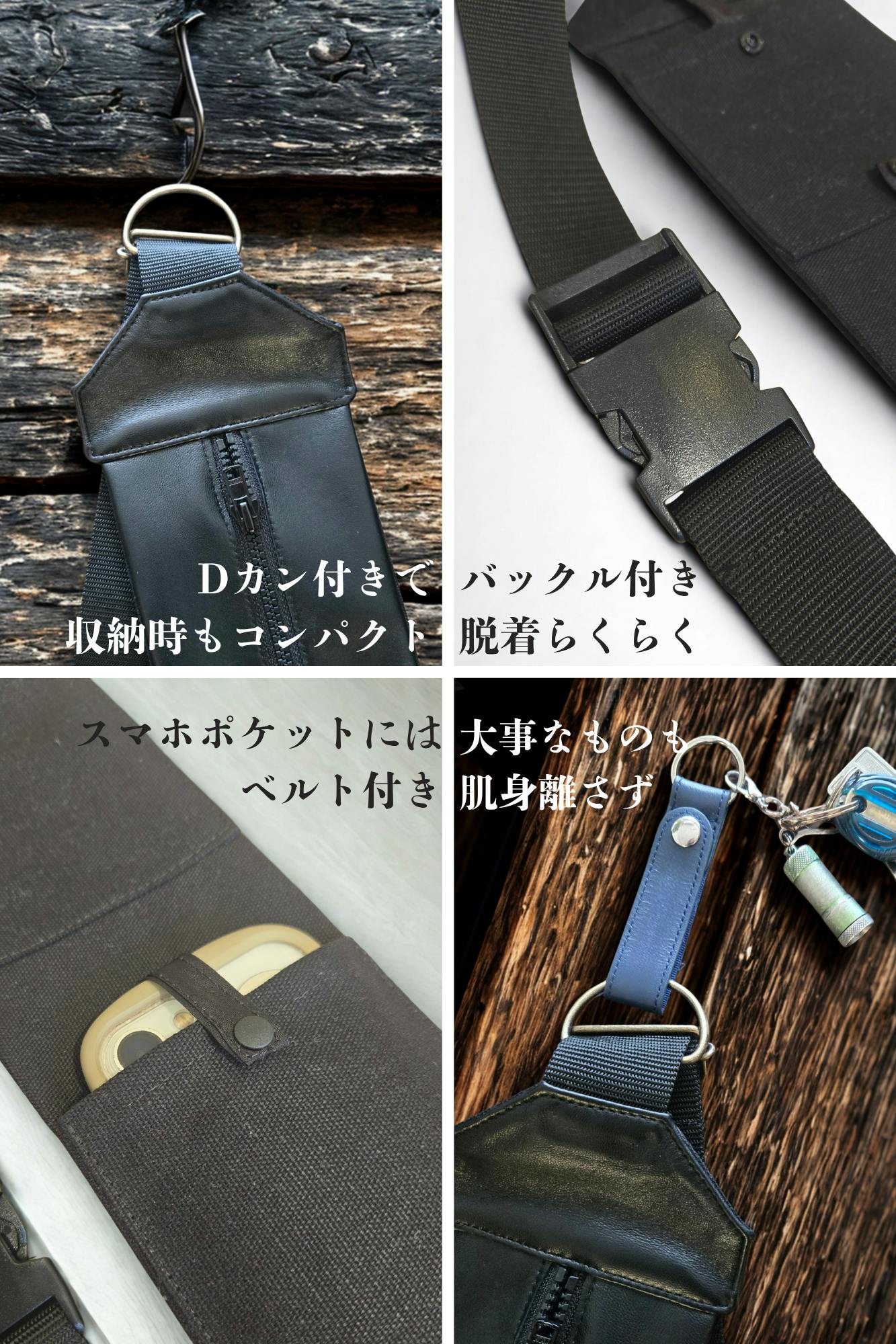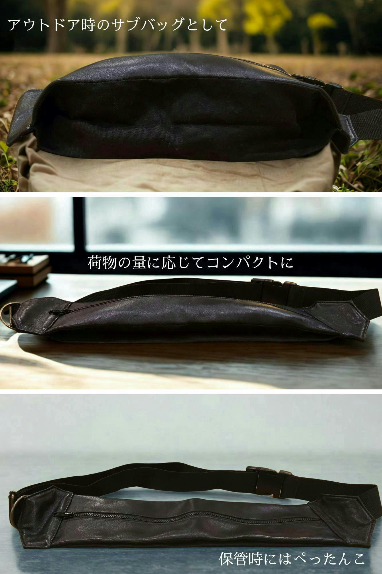 出先で荷物が増えても、減っても使い勝手が良い万能なボディバッグです。