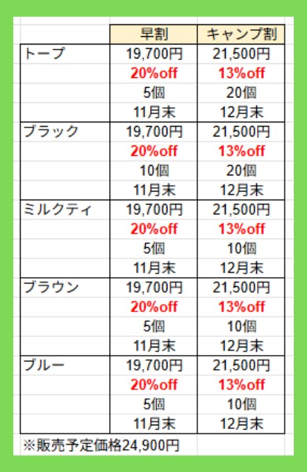 →ブラック・ブラウン・ブルー・トープ・ミルクティ5色から選べます。