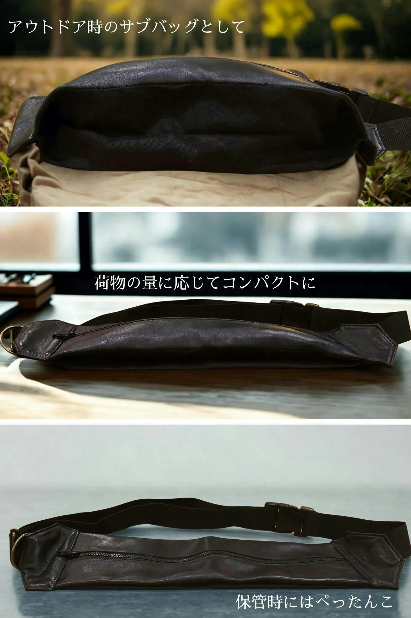 高級感のある本革の質感と、驚くほどの軽さ・柔らかさを兼ね備えたソフトラムレザー製ボディバッグが誕生しました。 しなやかな革が身体にフィットし容量もたっぷり。 街中でも旅先でも、男女問わず使える上品な存在感が魅力です。 「軽やかに持てるレザー」をテーマに、あなたの相棒になる逸品をお届けします。