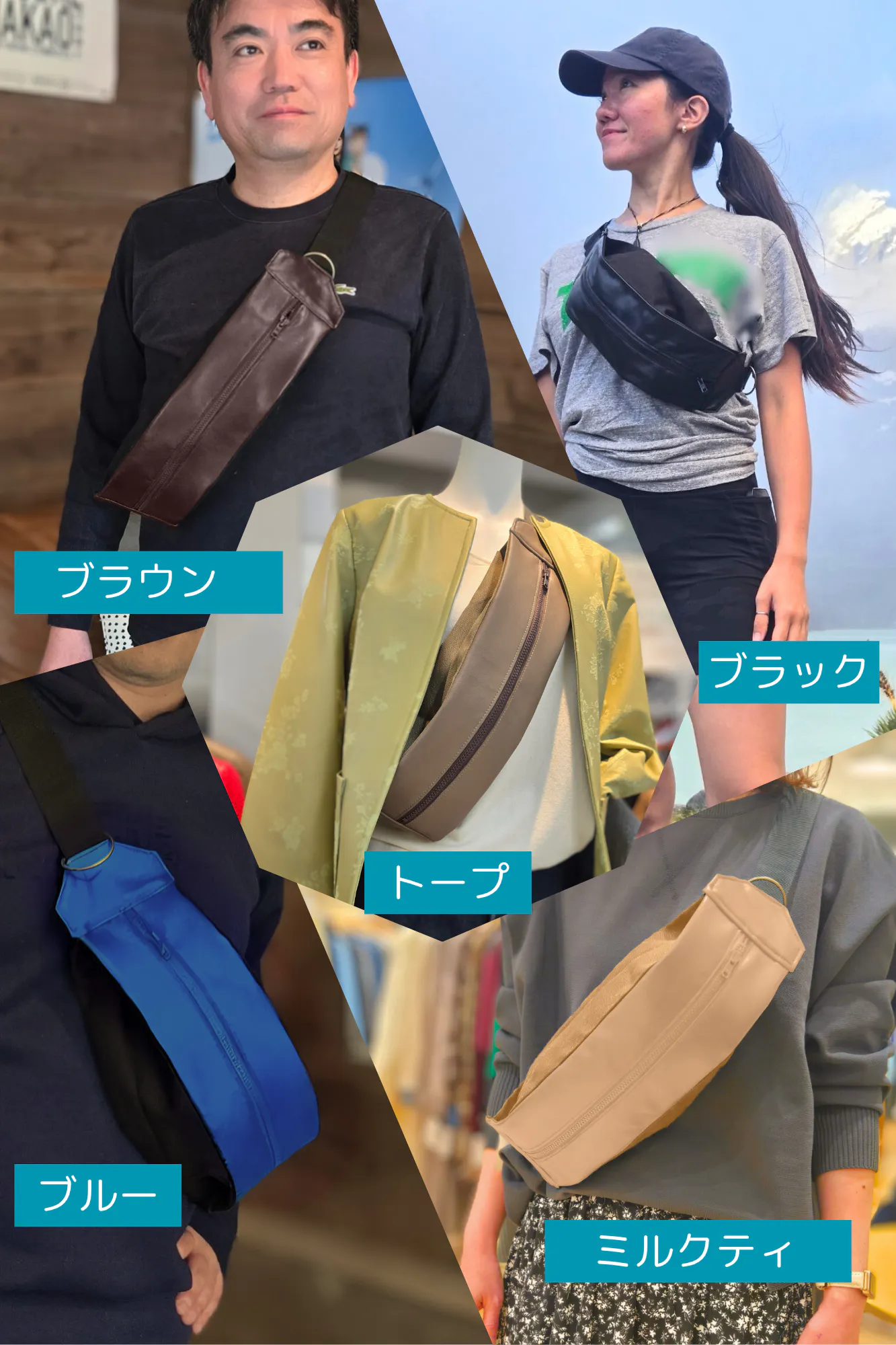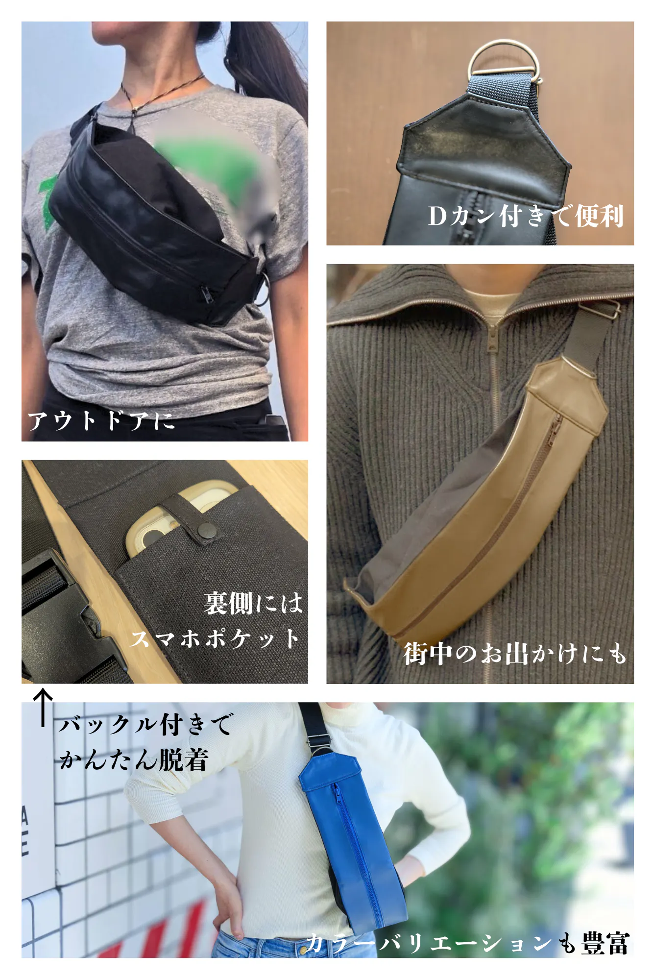 出先で荷物が増えても、減っても使い勝手が良い万能なボディバッグです。