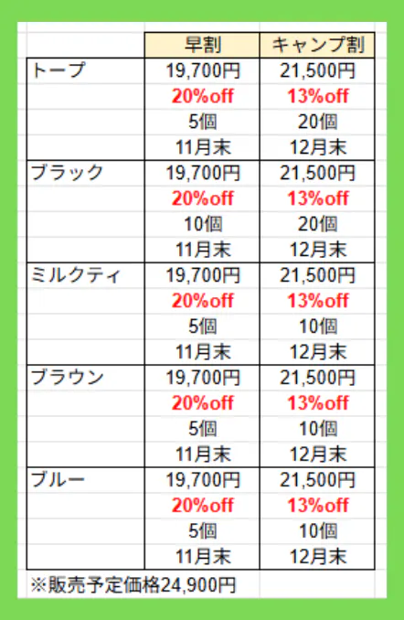 →ブラック・ブラウン・ブルー・トープ・ミルクティ5色から選べます。
