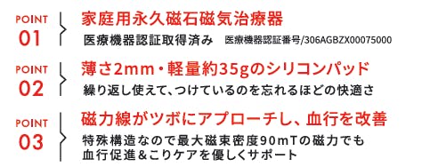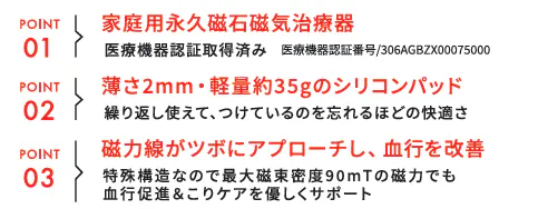 医療機器区分 : 管理医療機器 (家庭用永久磁石磁気治療器)