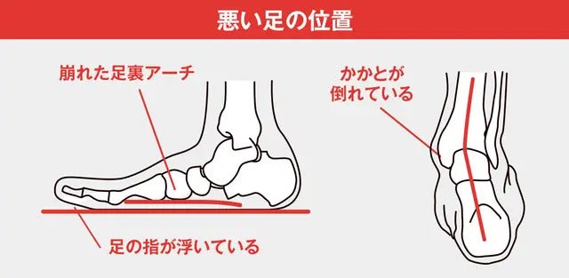 足の位置が悪いことで、全身がぐらぐらと不安定になりアンバランスな状態に。