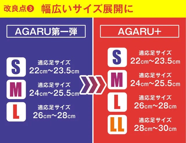 さらに、すべての方にAGARU+をお使いいただけるよう。自分に合うサイズがないという声に答えるべく、LLサイズも追加いたしました!
