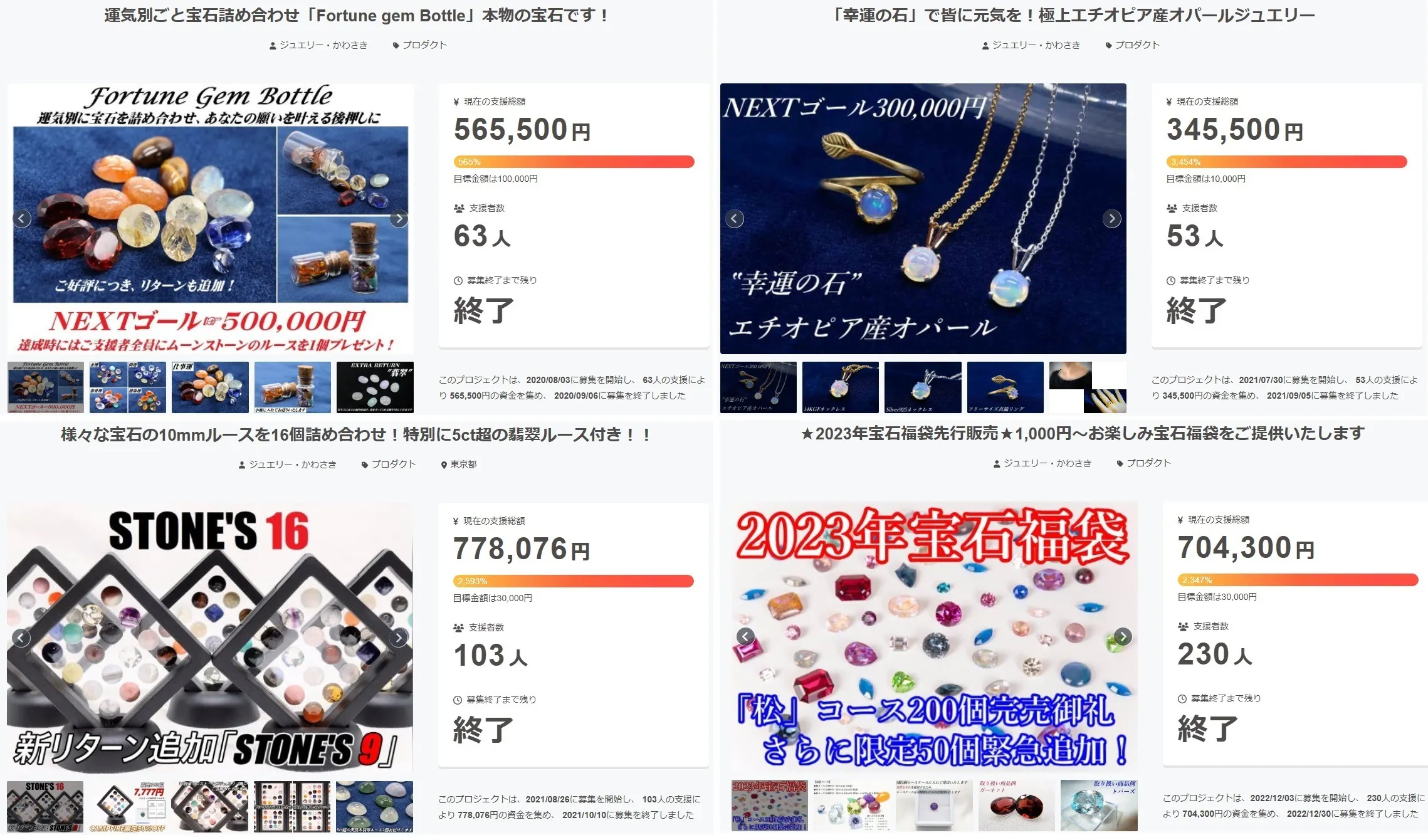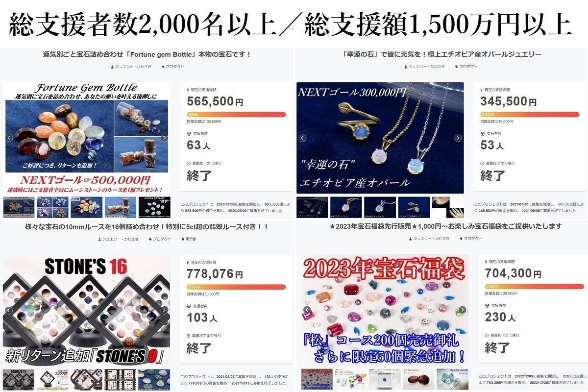 ジュエリー・かわさきがCAMPFIREで初めてプロジェクトを実施して以来、丸5年が経過いたしました。これまで実施してきたプロジェクト、コミュニティは120件以上になり、総支援者数は2,000名以上、総支援額は1,500万以上にのぼります。これまでご支援下さりました皆様、本当にありがとうございます。