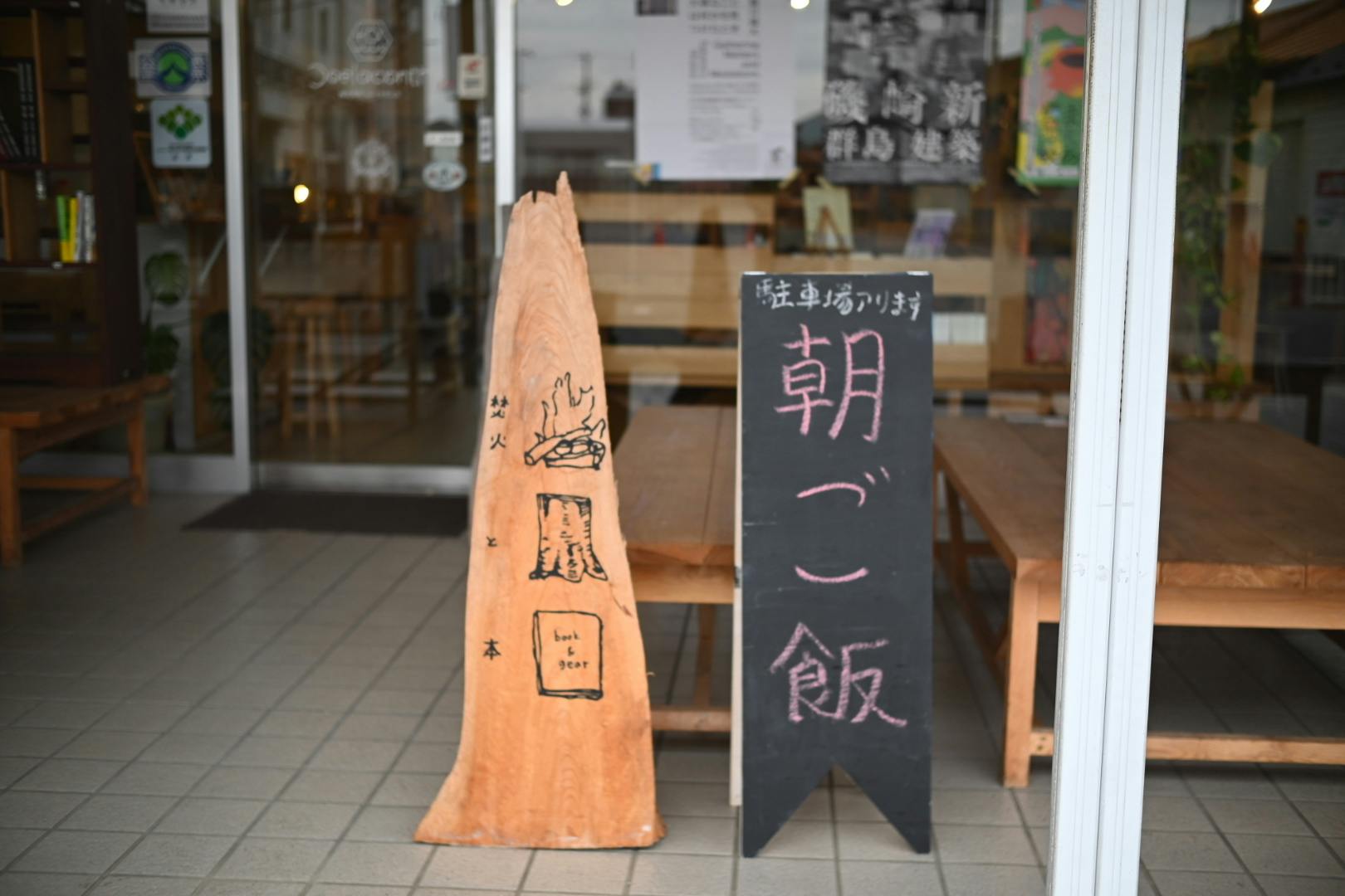 一件目の「焚火と本」。本とキャンプギアとコーヒーのお店。