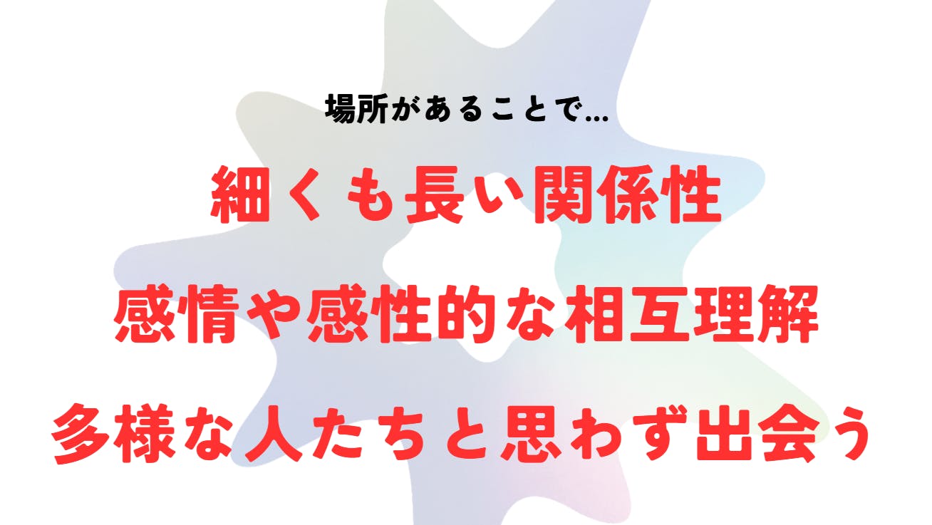 なぜ「顔を合わせられる場所」なのかというと、対面での交流があるからこそ、単なる情報のやり取りではなく感情や感性を含めた相互理解ができるのではないか、と思えるから。