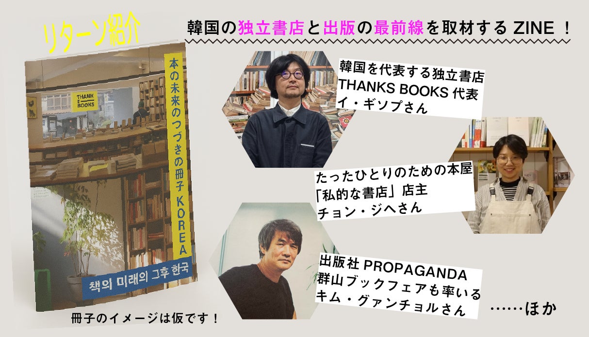 KITAKAGAYA FLEA & ASIA BOOK MARKETのクラウドファンディングをご支援いただきありがとうございます。クラウドファンディング終了まで残り2日!!!!となりました。みなさまのおかげで、現在260名の方からご支援をいただき、現時点で約232万円(目標達成率52%)まで伸ばすことができました。本当に、本当に嬉しいです。ご支援や直接のメッセージはもちろん、SNS拡散などを目にするたび励まされています。いつも本当にありがとうございます。なんとか300万まで、いや、それ以上目指して行きたいと思っています!どうか引き続きみなさまのお力添えをよろしくお願いします。そして、本日9/11(木)18:00〜18:10に、KITAKAGAYA FLEA & ASIA BOOK MARKETの韓国コーディネートチームがJ-WAVEの番組「GRAND MARQUEE」に出演します!イベントの魅力やクラウドファンディングについて話をしてくれますので、ぜひご視聴ください!韓国コーディネートチーム(綾女欣伸さん、内沼晋太郎さん、古谷未来さん)のリターンである「本の未来のつづきの冊子 KOREA」は、韓国の本と出版に携わるキーパーソンに2025年の最新事情を聞いたオリジナル冊子です。この本があったから、ASIA BOOK MARKETが始まったと言っても過言ではありません(詳しくは内沼さんの応援コメントをご覧ください)。是非この貴重な1冊を片手に今年のKF&ABMをお楽しみください!残り2日も応援どうぞよろしくお願いいたします!