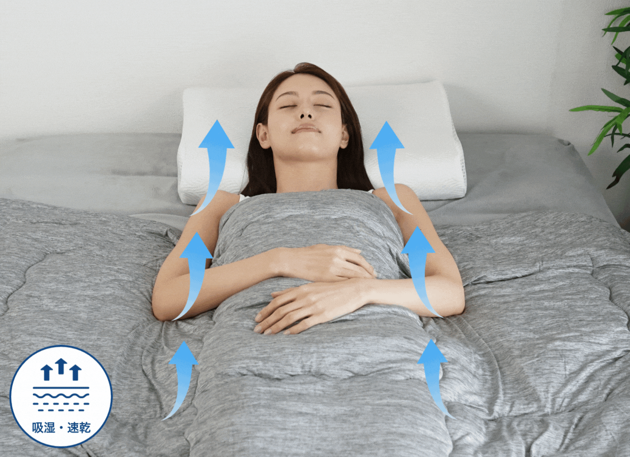 夏の発汗による蒸れもしっかりと対策されており、快適な睡眠環境を保ちます。