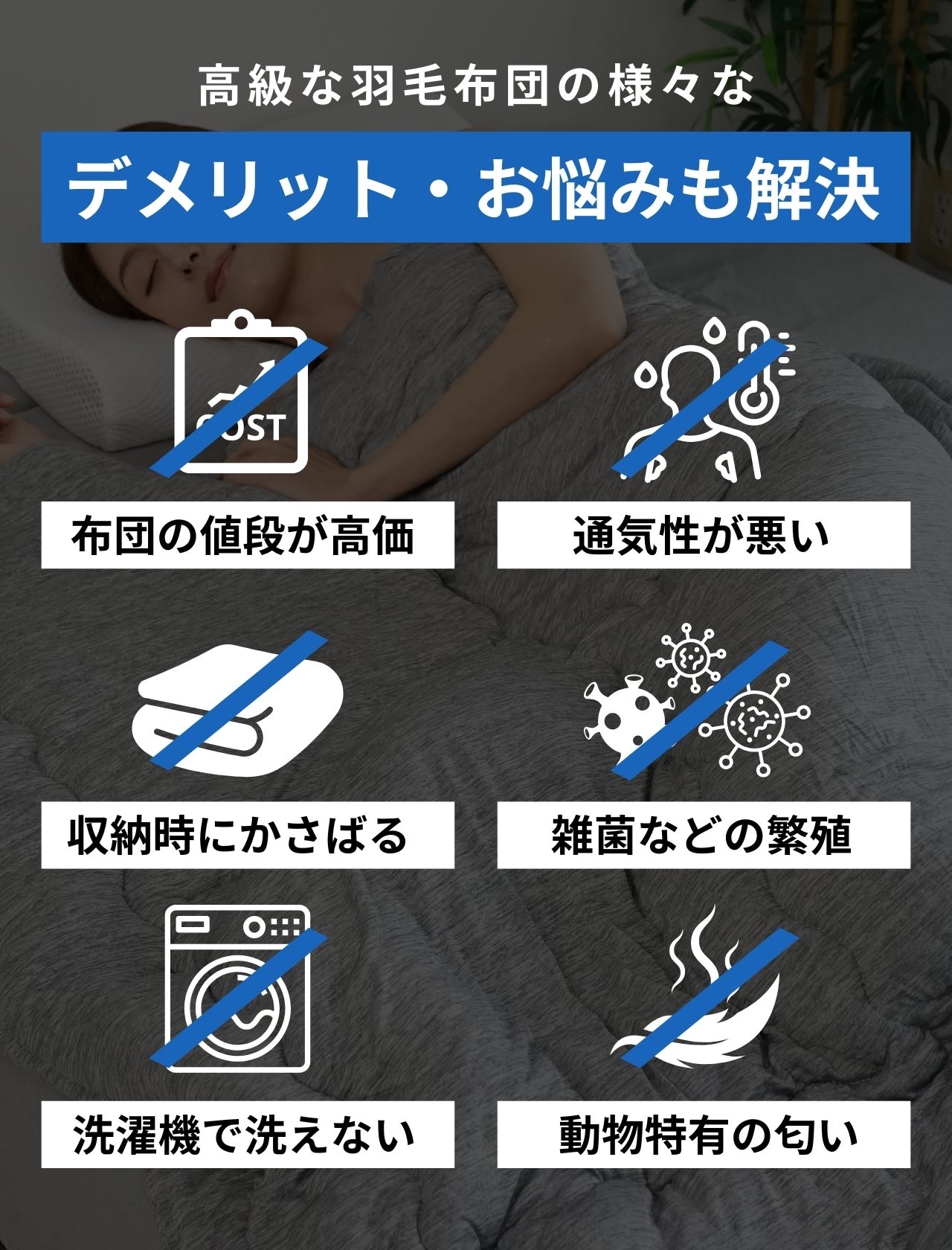 自動で温度を調整してくれるから、冷暖房に頼りすぎず快適に。電気代の節約にもつながる、環境にやさしいエコな掛け布団です。