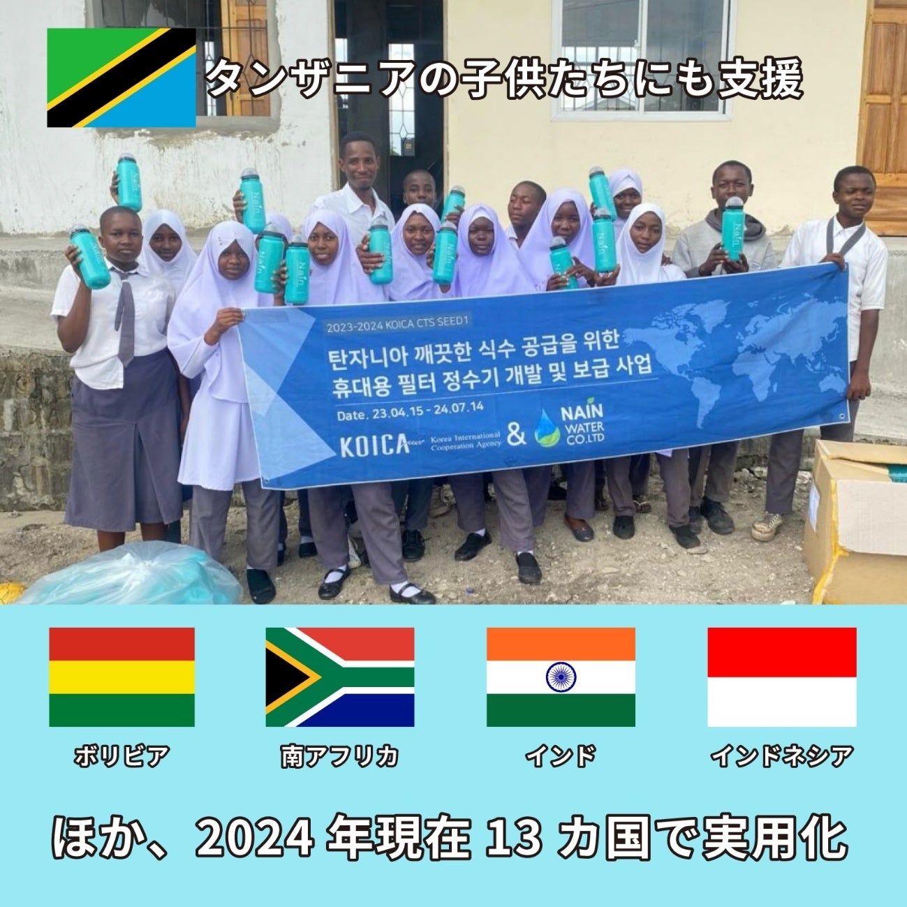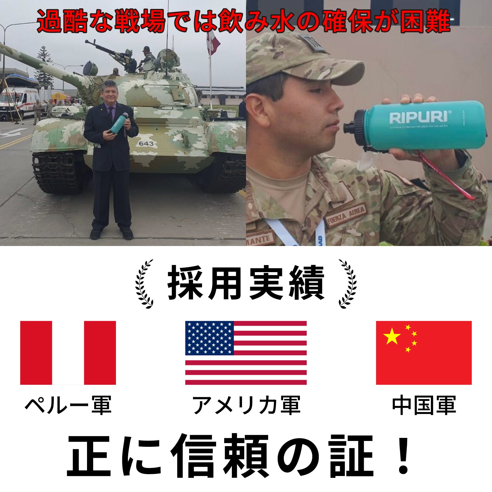 洪水で断水したペルーに現地要請で供給した実績も。商品名には、ペットボトル削減と水不足解消への想いを象徴しています。