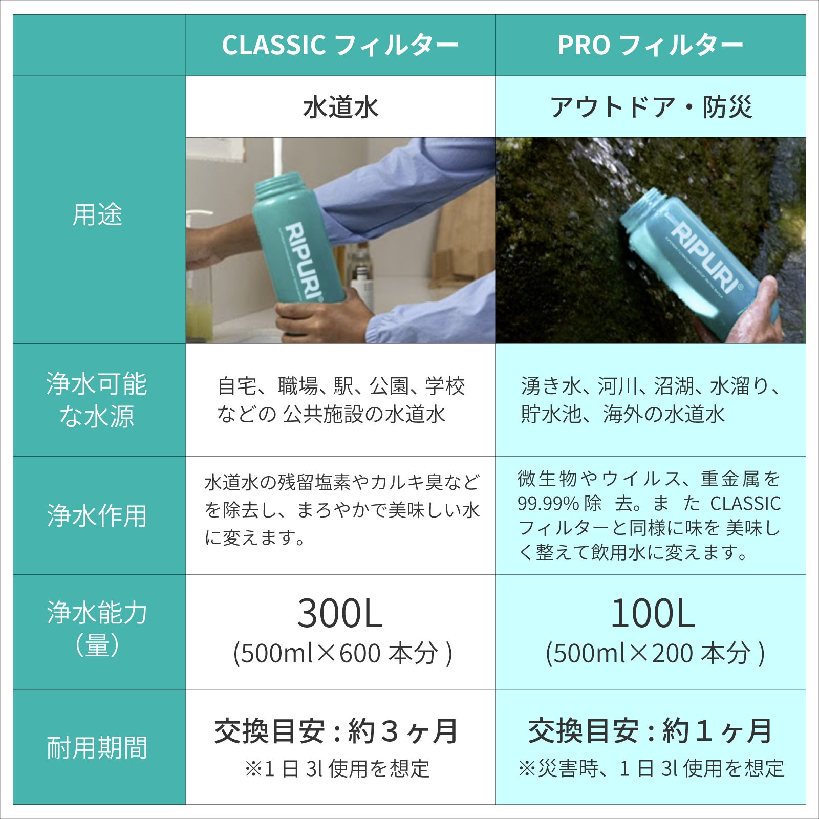 フィルターは2種類。あなたのライフスタイルに合わせて選べます!