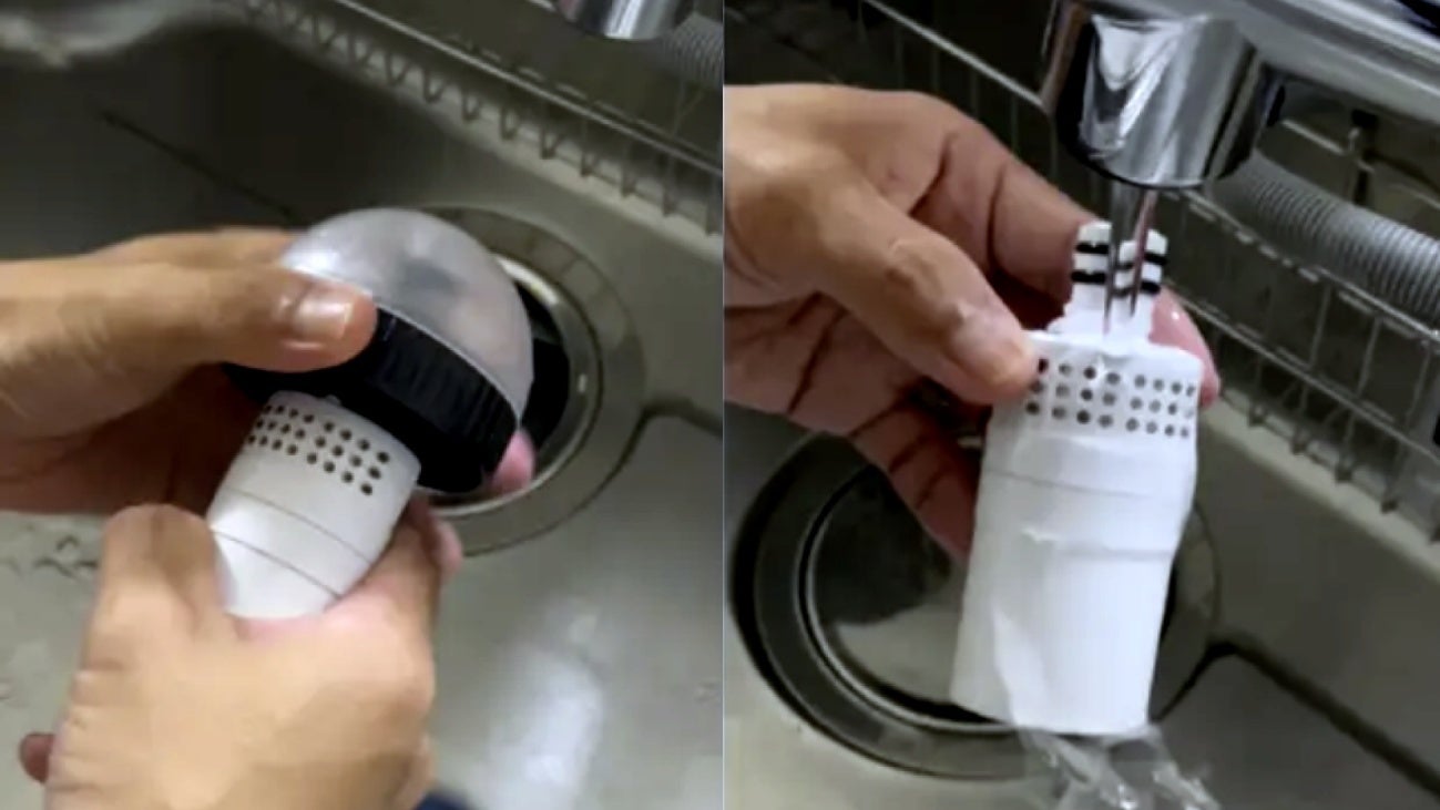 フィルターは流水で30秒すすいで活性炭を湿らせる。