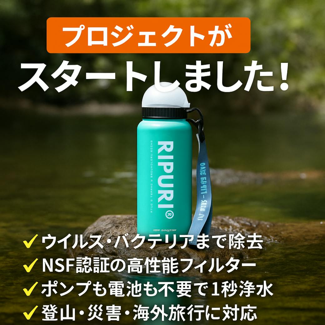 2025/07/07 20:12本日ついに、AQUATERRAのクラウドファンディングがスタートしました!AQUATERRAは「いつでもどこでも安心して水が飲める社会をつくりたい」という想いから生まれた、超軽量の高性能ポータブル浄水ボトルです。・ウイルス・バクテリアまで除去・NSF認証の高性能フィルター・ポンプも電池も不要で1秒浄水・登山・災害・海外旅行にも対応・最大30%OFFスタートから勢いを感じています!今後も開発の裏話や活用シーンなどを活動報告で共有していきますので、ぜひご期待ください。引き続き、どうぞ応援よろしくお願いします!プロジェクトページはこちら:https://camp-fire.jp/projects/850960/view もっと見る