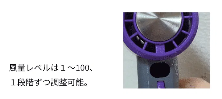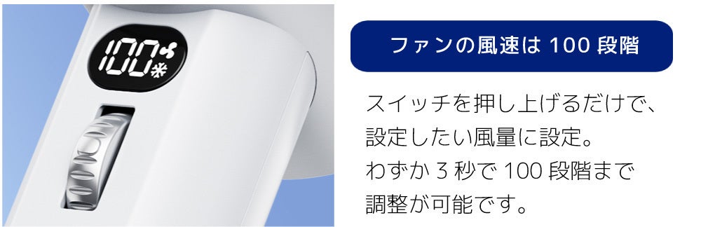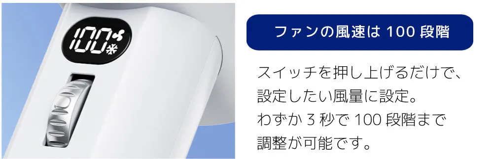 さらに風量調整は一般的な5段階などではなく、100段階まで1レベル毎に調整が可能なハイグレード製品です。