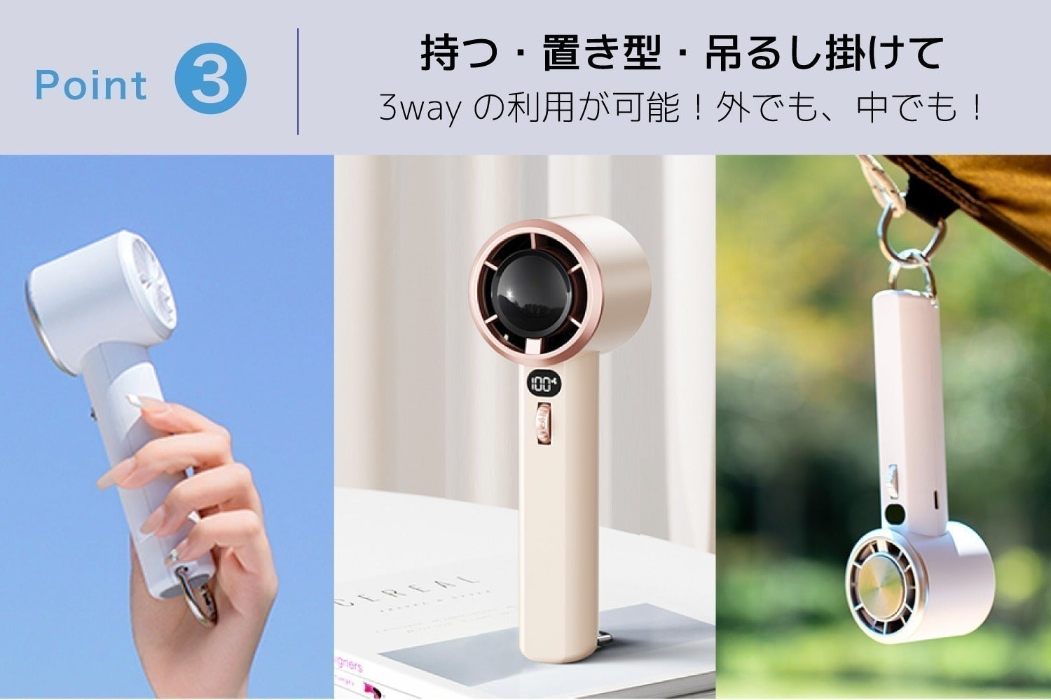3wayで楽しめる最新ハンディファンを是非ご体感ください!