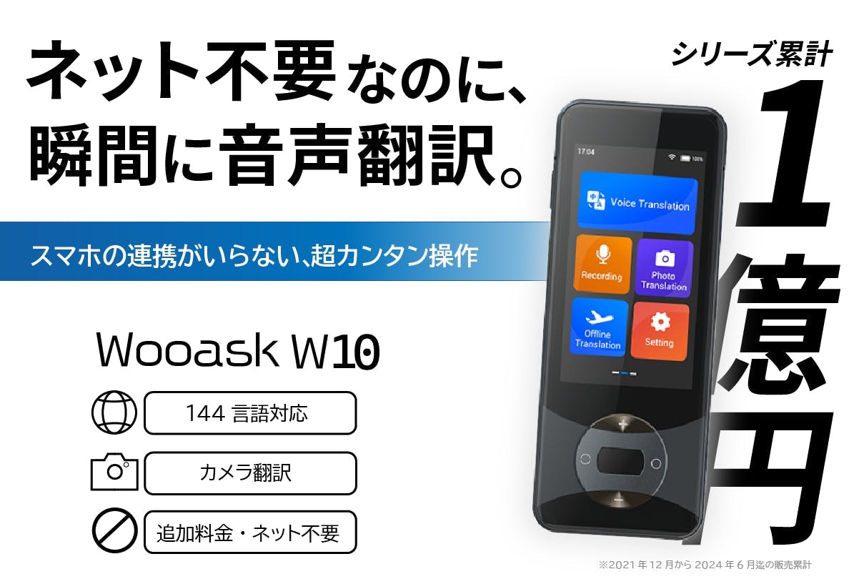 Wooask W10 AI翻訳機 144言語対応 ネット・アプリ連携不要で瞬時に音声翻訳 写真翻訳機能も搭載