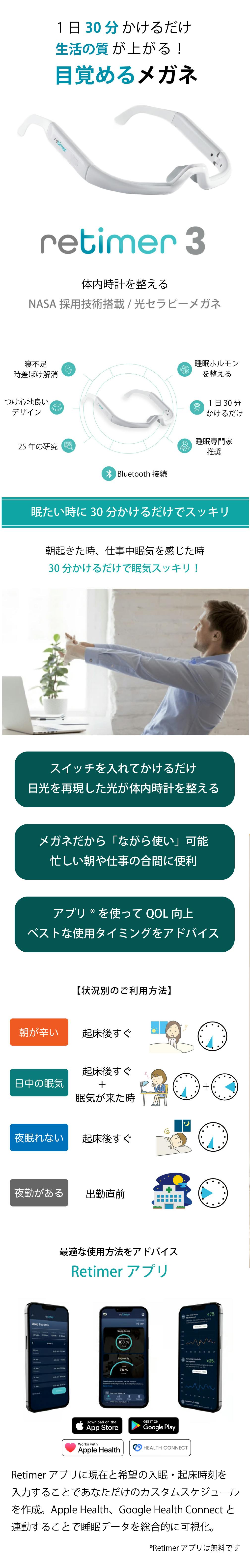 眠い時にかけるだけ日光を再現した光で体内時計の調整をサポートする光セラピーメガネ「Retimer3」がプロジェクトを開始しております!