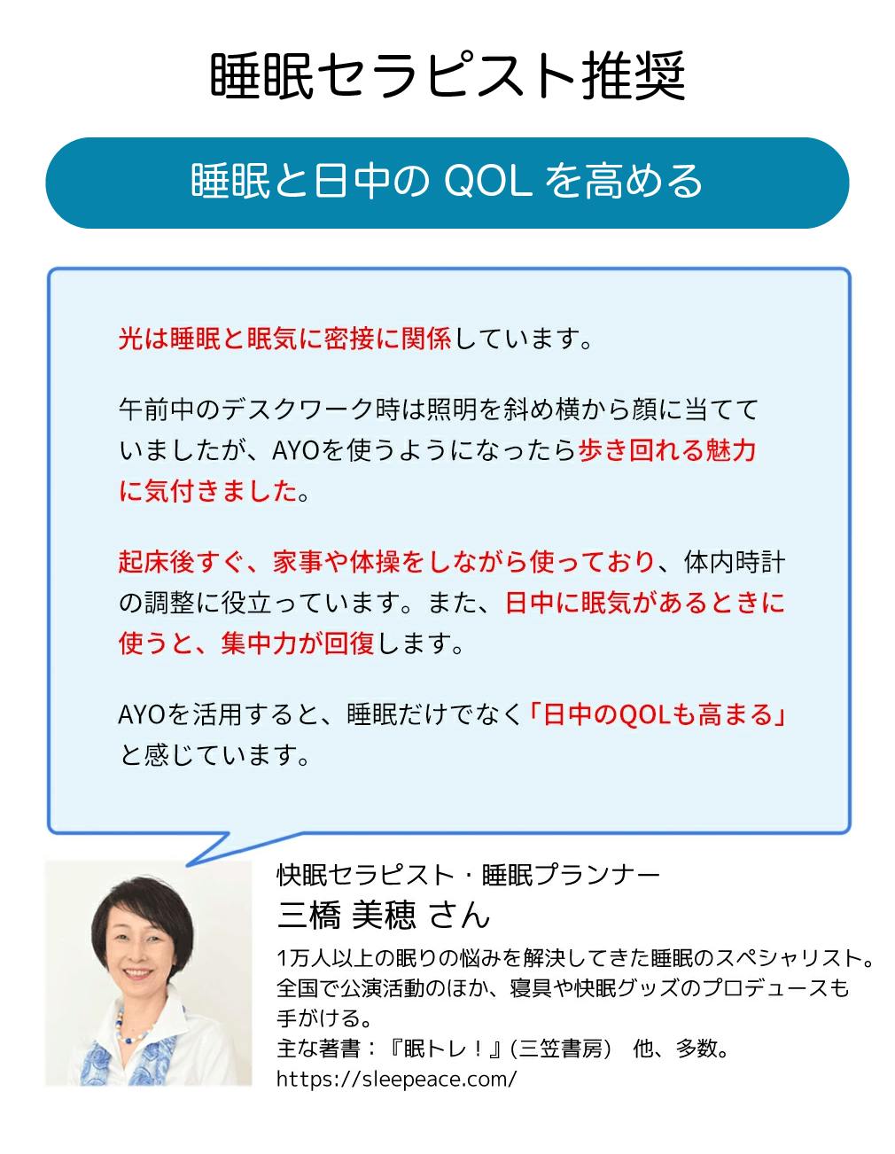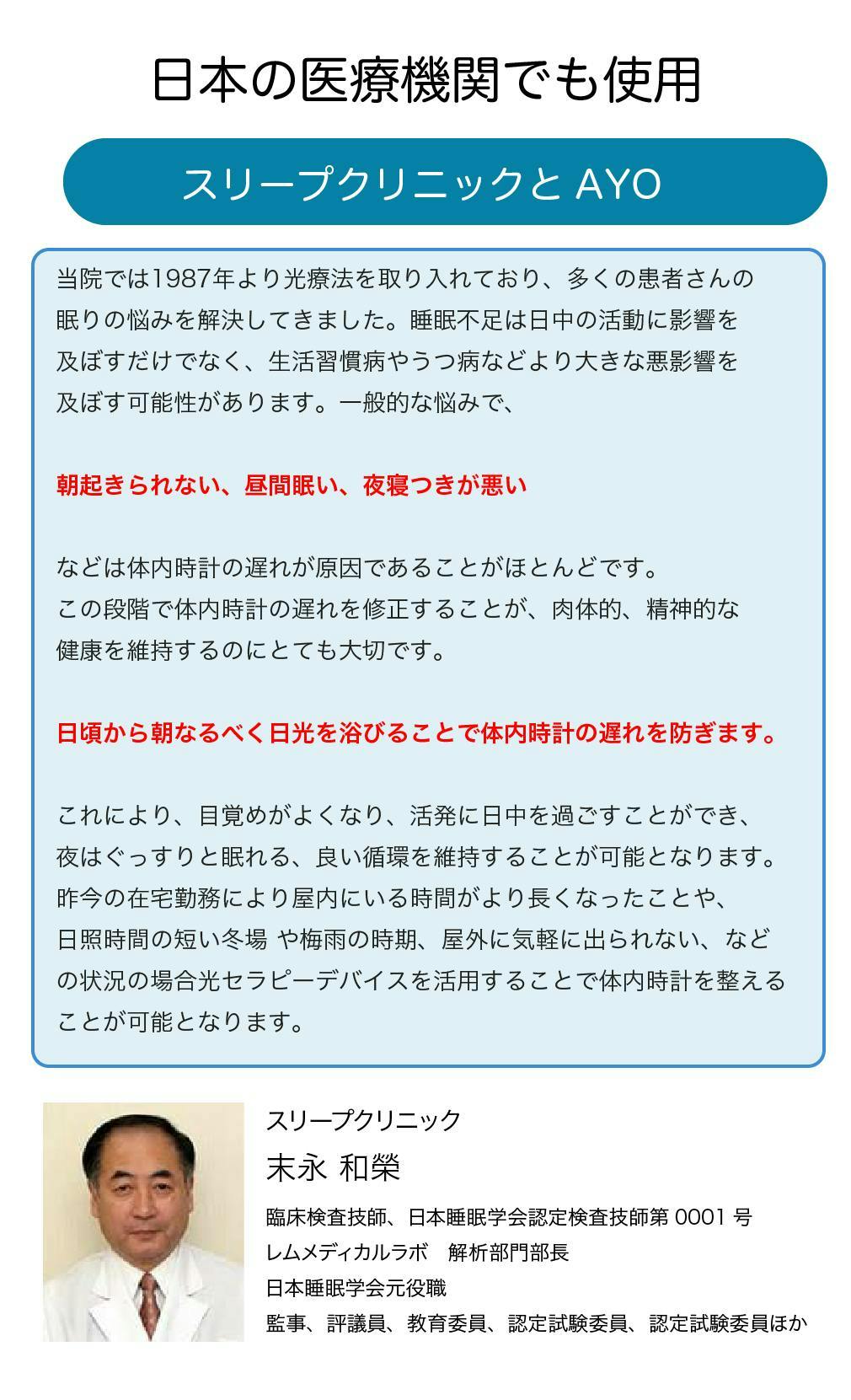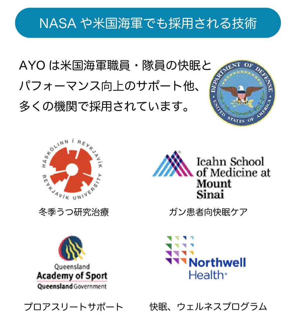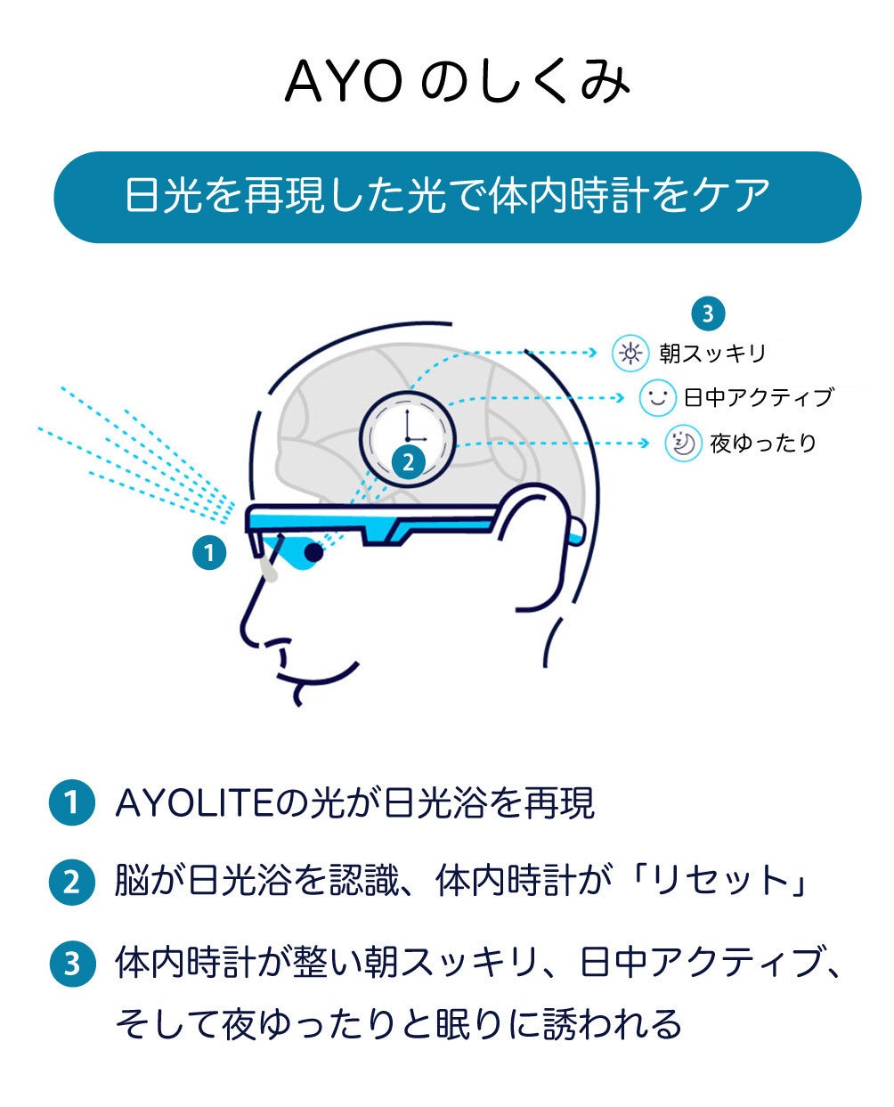 AYO PRO があれば「眠い時に20分かけるだけ ➤ すっきり目覚める ➤ 時差ボケの解消をサポート」が