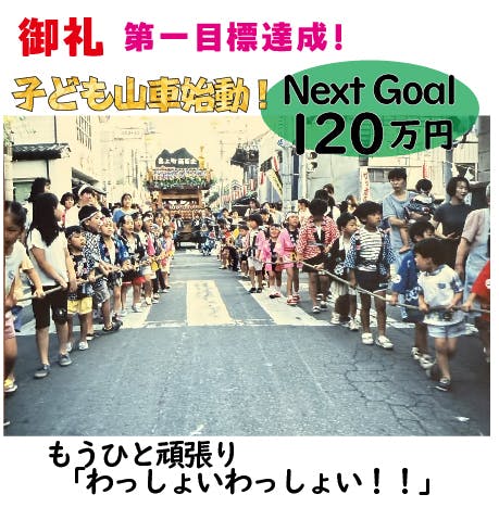 今後は第二ゴールとして、120万円を目指しながら、山車の更なる修復費用に当てたいと考えています。