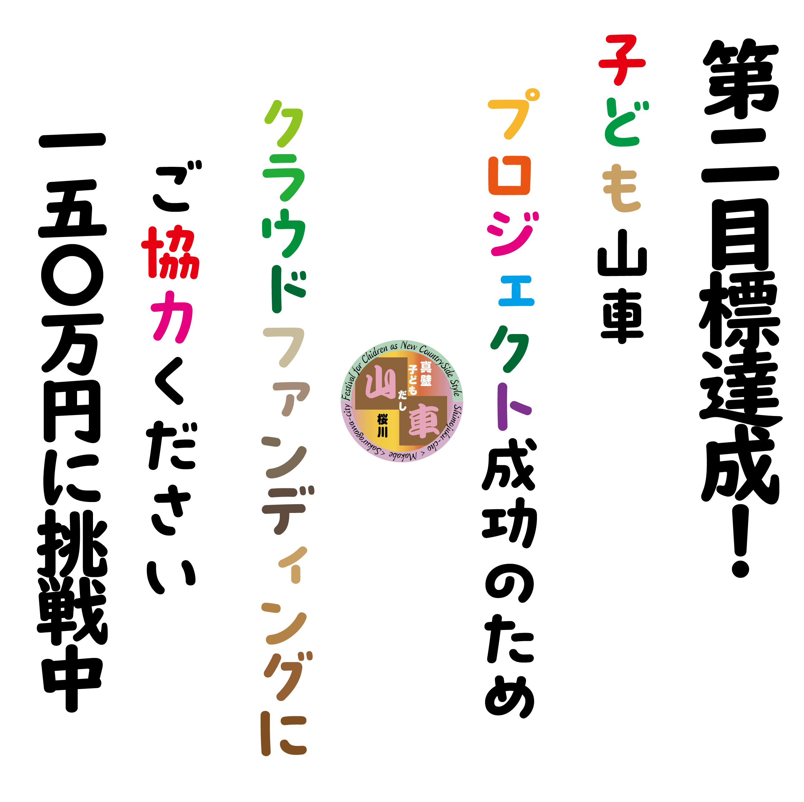 御礼、第二目標達成!皆さんの応援のお陰で、目標額120万円を何と1日で達成いたしました。感謝・・・感謝・・・この資金を活用し、山車の修復箇所を拡大します。ご支援、本当にありがとうございました。この後、第三ゴールとして、150万円を目指します。この山車が、もっともっと元気に発信するためのご支援をよろしくお願いいたします。このプロジェクトを通じ、往時の真壁祇園祭がいかに賑やかに開催されていたかを再認識しました。子どもたちは祭りが近づくと心が弾んで寝れなくなったといいます。祭りの始まる日には、各町の山車を自転車で巡りチェックするのが楽しみだったといいます。当時は飾り付けを毎年リニューアルし、それを真っ先に見るのが楽しみだったと・・・そんな子どもたちの姿を、この「真壁子ども山車」をきっかけに呼び戻したい!その思い出有志一同頑張っています。