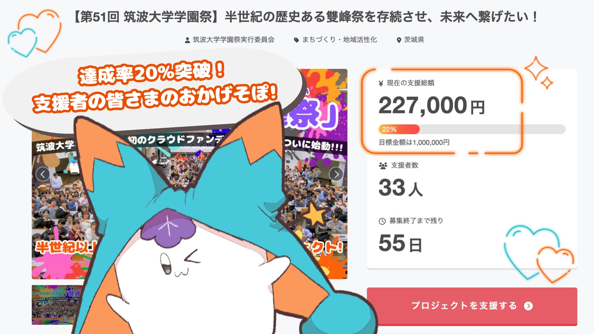 皆さまの温かいご支援のおかげで、プロジェクト公開からわずか数日で、目標金額の20%を突破することができました!