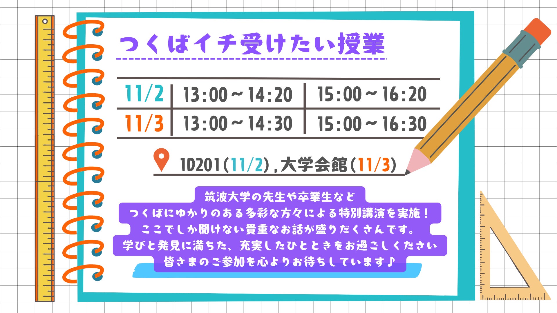 企画の詳細は『第51回雙峰祭 公式webページ-学園祭講演企画 つくばイチ受けたい授業 または公式X/Twitter @tsukuba_ichi および公式instagram @tsuku_ichi』をご確認ください。