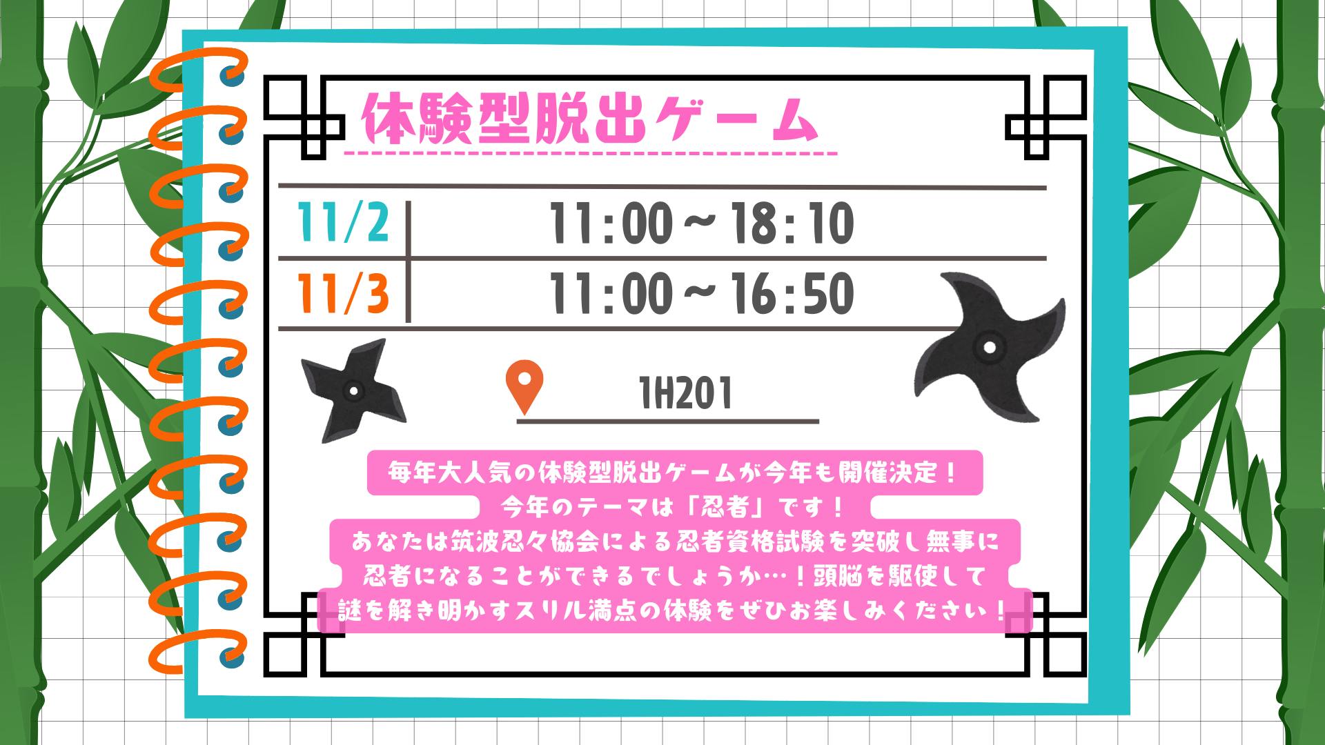 企画の詳細は『第51回雙峰祭 公式webページ-進め忍者!!忍者資格試験への挑戦』をご確認ください。